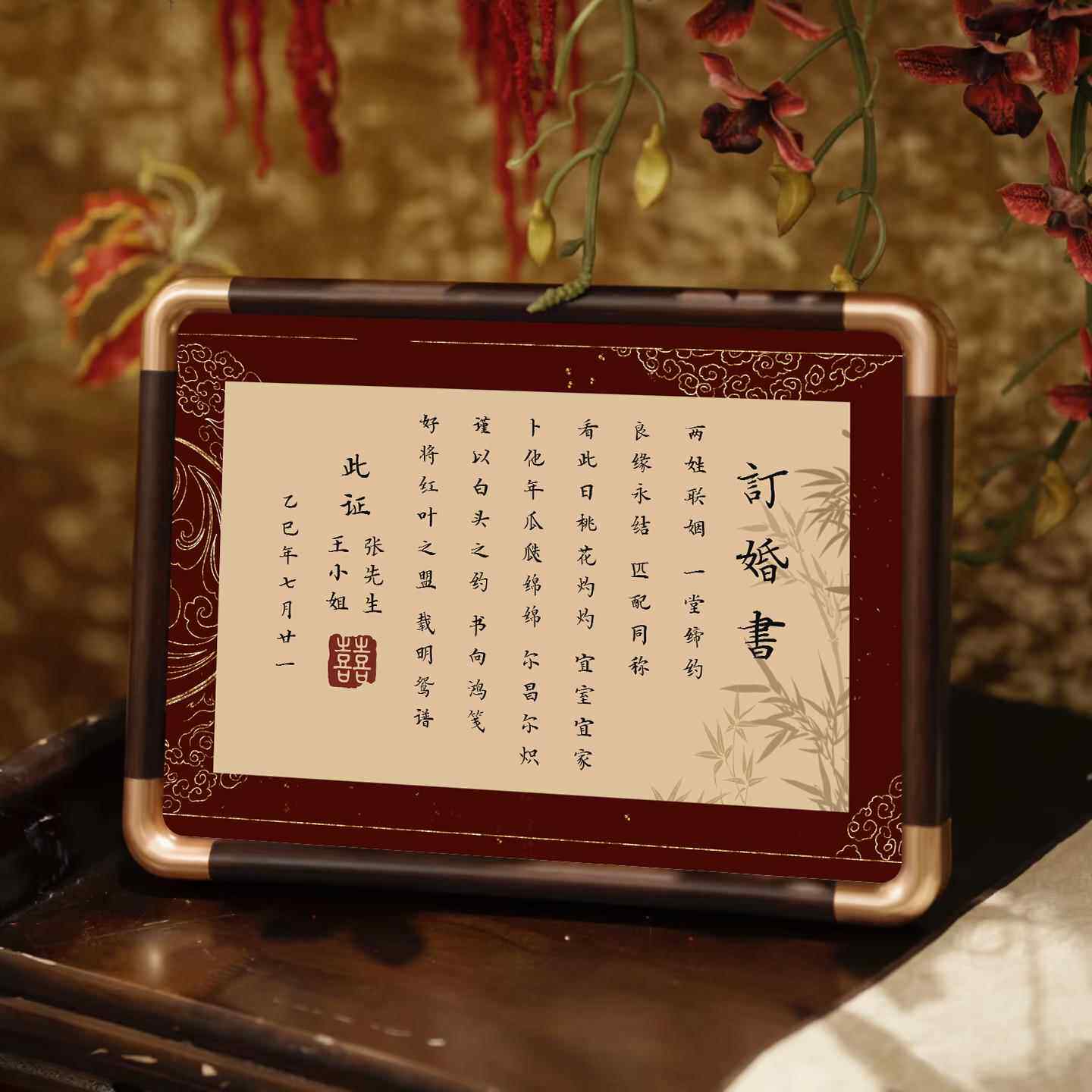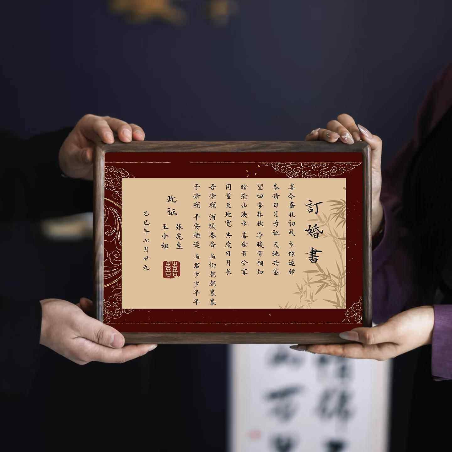 📚 订婚书中国风定制婚书高级感相框摆件摆台订婚结婚中式相框送日子
