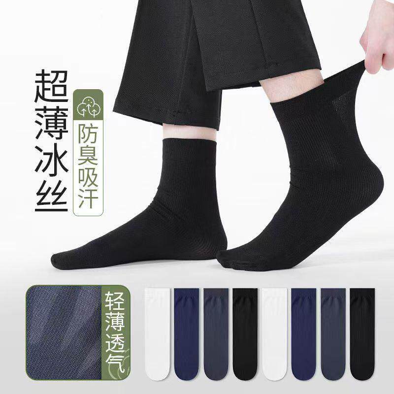 📚 40双男士丝袜短款男款袜子夏薄款耐磨钢丝袜黑色冰丝袜防臭中短袜