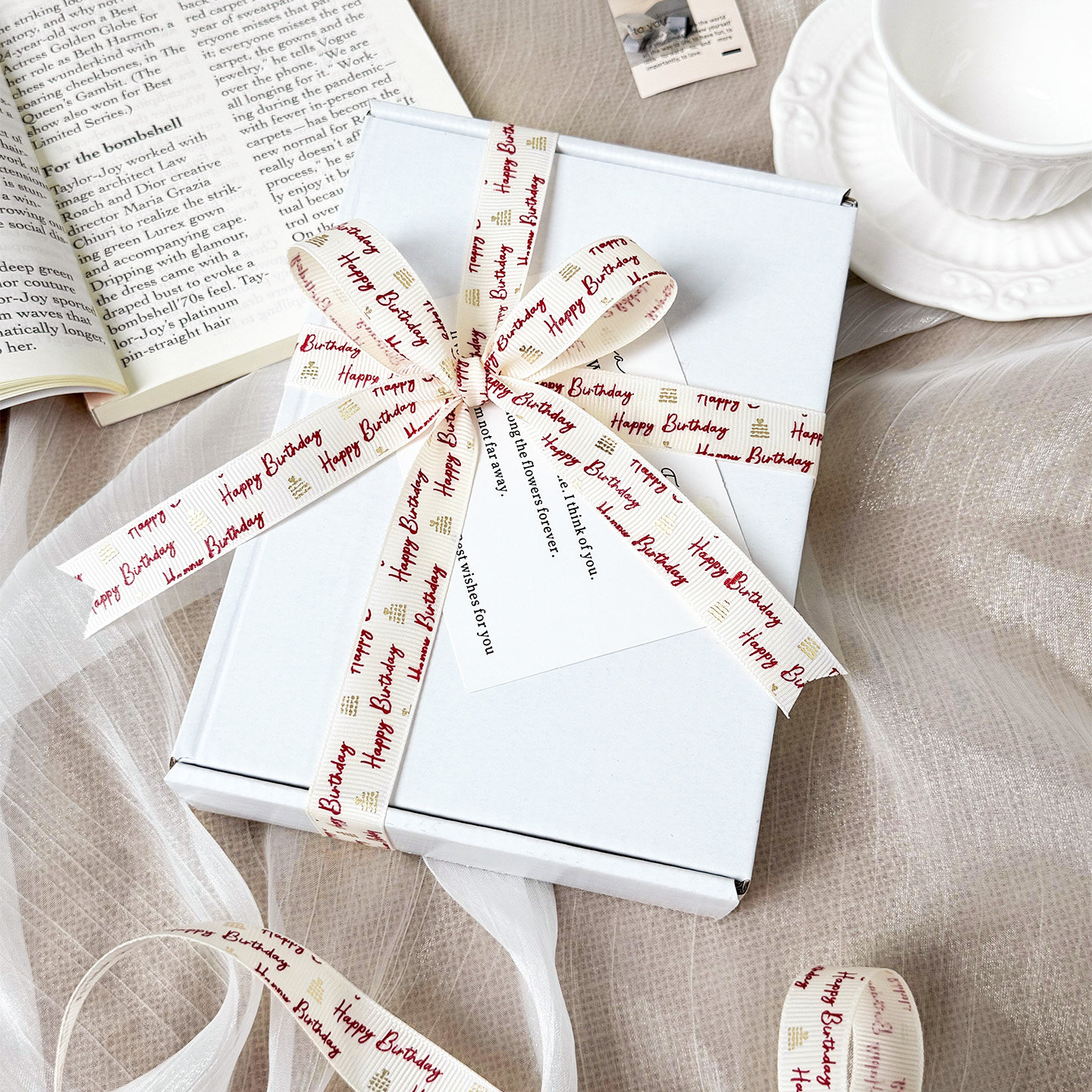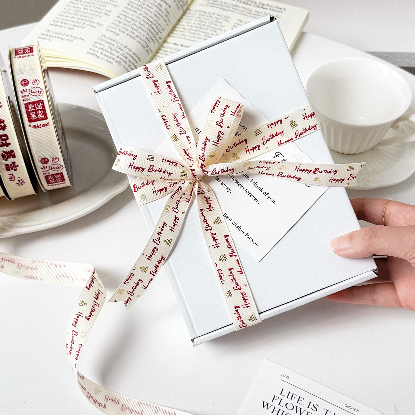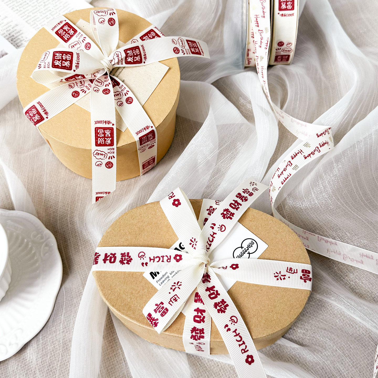 📚 节日发财暴富礼盒礼物丝带蛋糕装饰米白罗纹打包绳新年彩带绑带