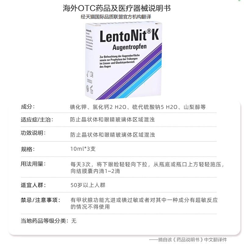📚 德国lentonit滴眼液飞蚊症晶状体玻璃体混浊眼底专用眼药水进口药