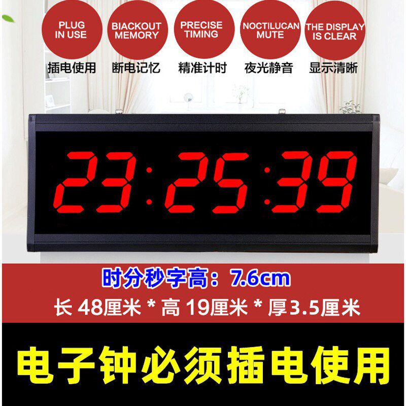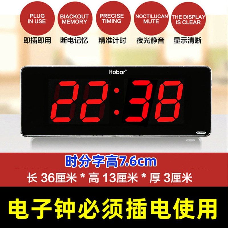 📚 简约高清大数字电子钟家用客厅长方形挂立时钟led大屏数码夜光表