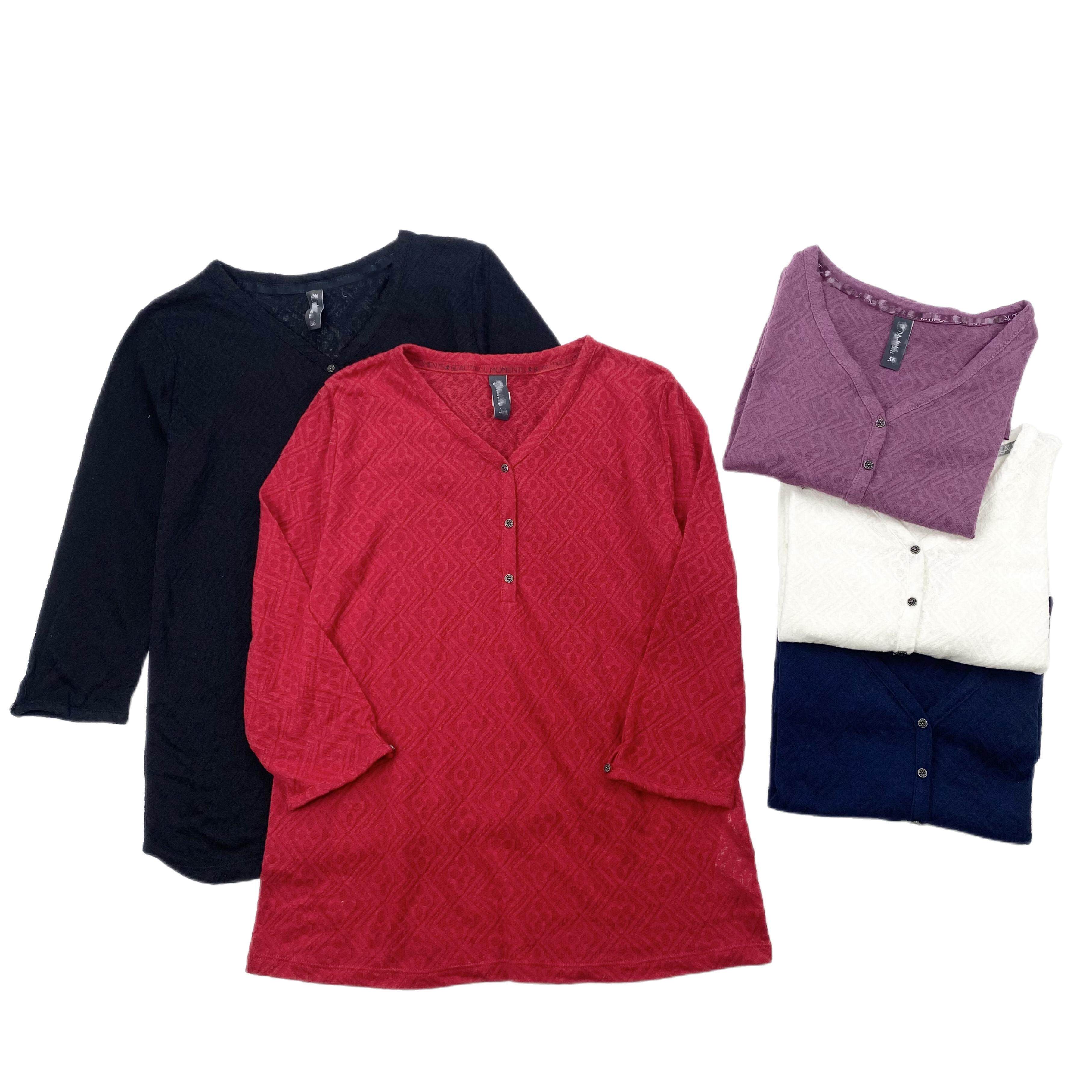 📚 C4024外贸新款女装三粒扣套头V领提花上衣宽松舒适七分袖T恤