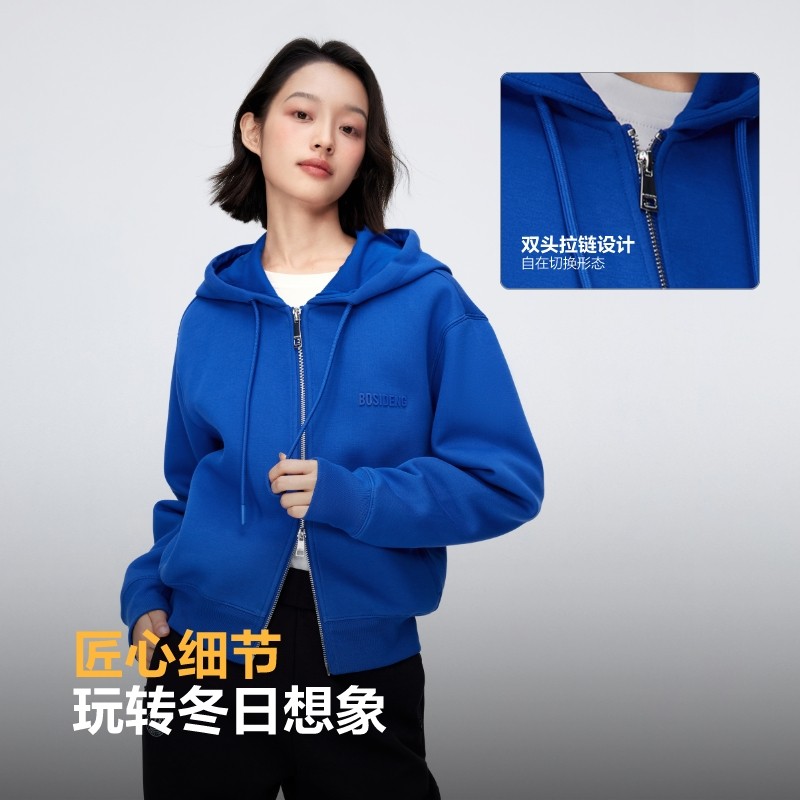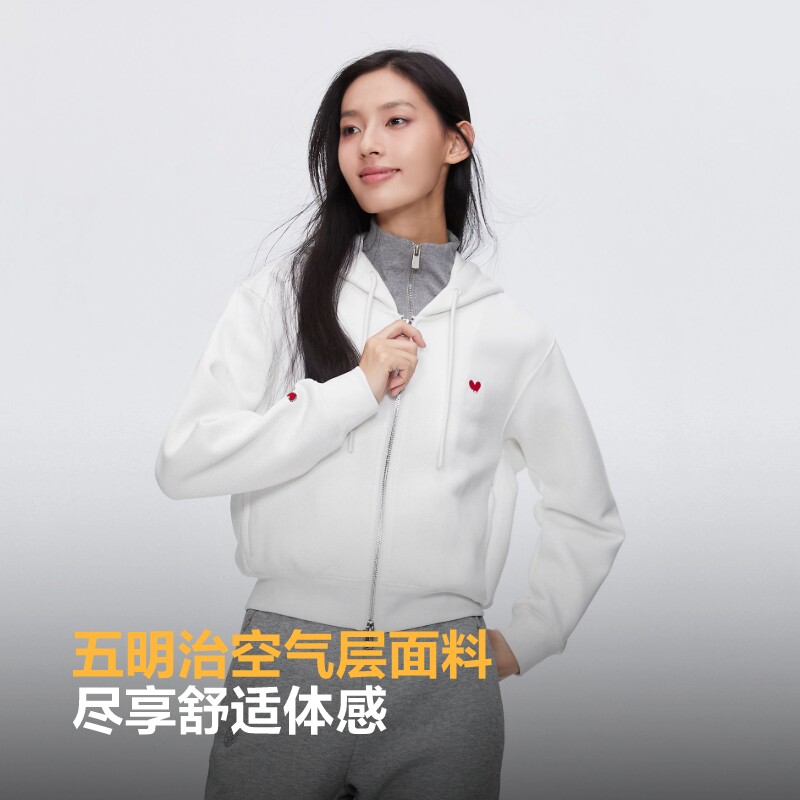 📚 【KH爱心联名】波司登连帽卫衣女冬季新款双头拉链开衫外套