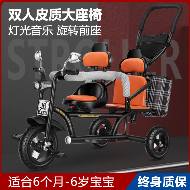 📚 儿童三轮车双人宝宝脚踏车双胞胎手推车婴儿轻便童车大号1-3-6岁