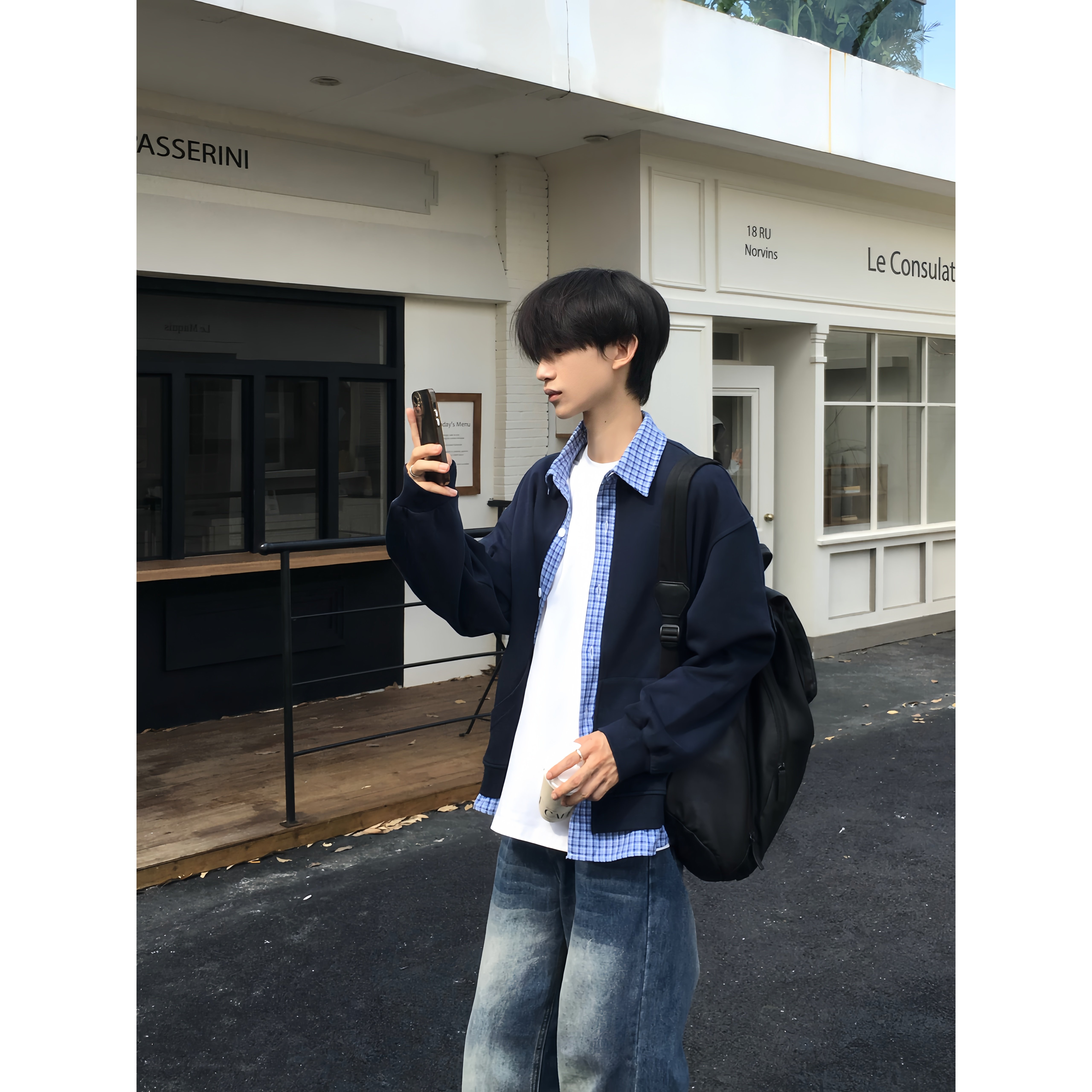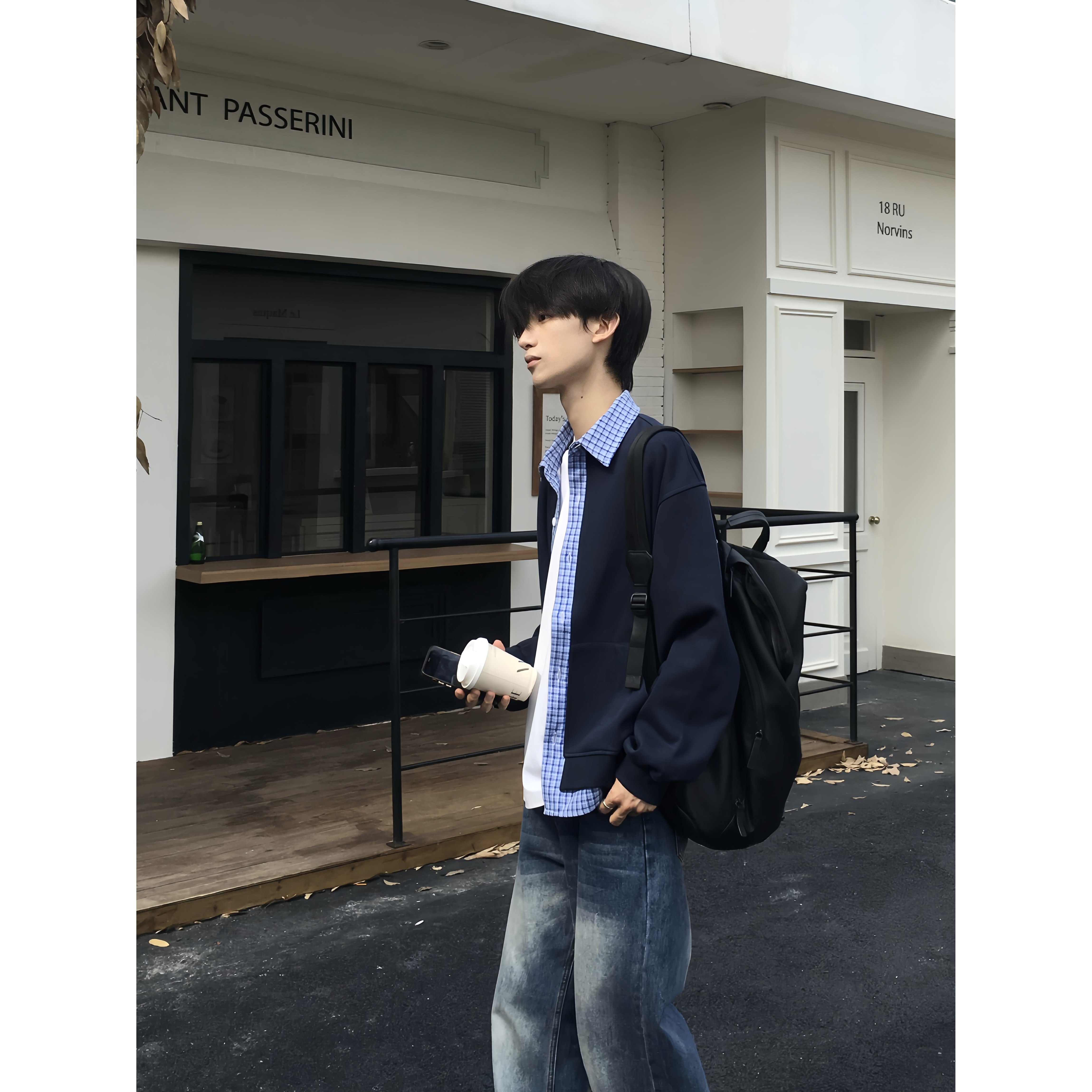 📚 TEN EMPTY韩系秋季拼接假两件衬衫男女宽松cleanfit翻领夹克外套