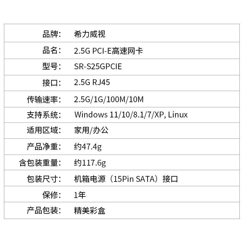 📚 希力威视2.5G5G10G网卡万兆单双光口电口PCIE电脑有线电竞游戏台式机网络千兆网口2500M1000M自适应RJ-45接口