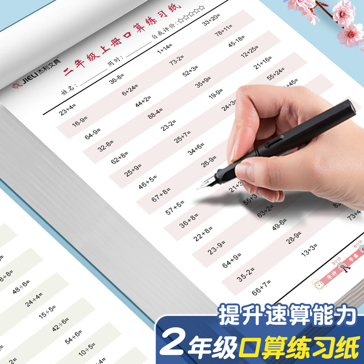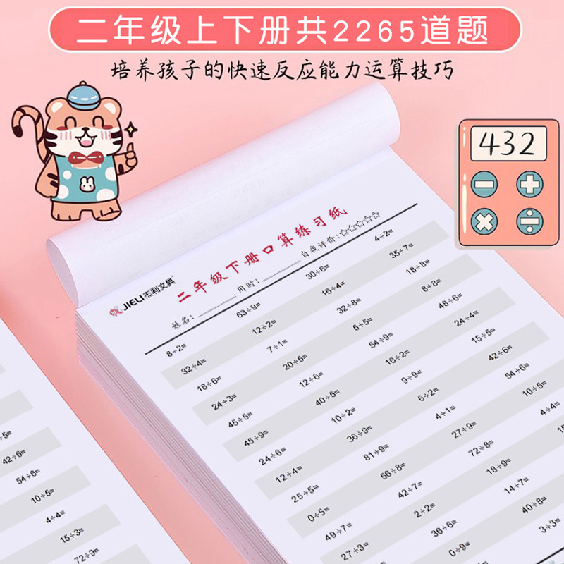 📚 杰利二年级上册口算天天练一升二暑假口算练习本下册算数速算专项训练纸加减乘除运算纸小学生每日一练算术本