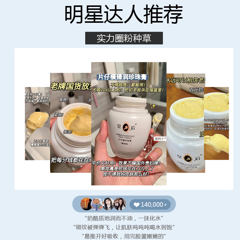 📚 片仔癀皇后牌珍珠膏臻润级补水保湿淡纹抗皱舒缓面霜男女紧致霜