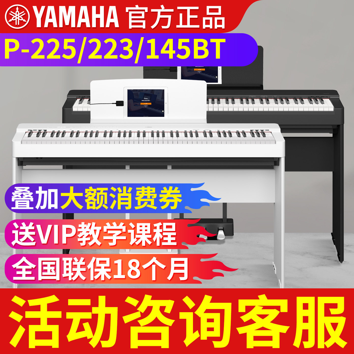 39¥ HU293 SpcbUEPFud7¥ https://m.tb.cn/h.iVX1Duu 雅马哈电钢琴88键重锤P225智能数码电子钢琴家用便携式初学者P125 --------------------- 【原售价】3,349元 【现售价】3,099元。
