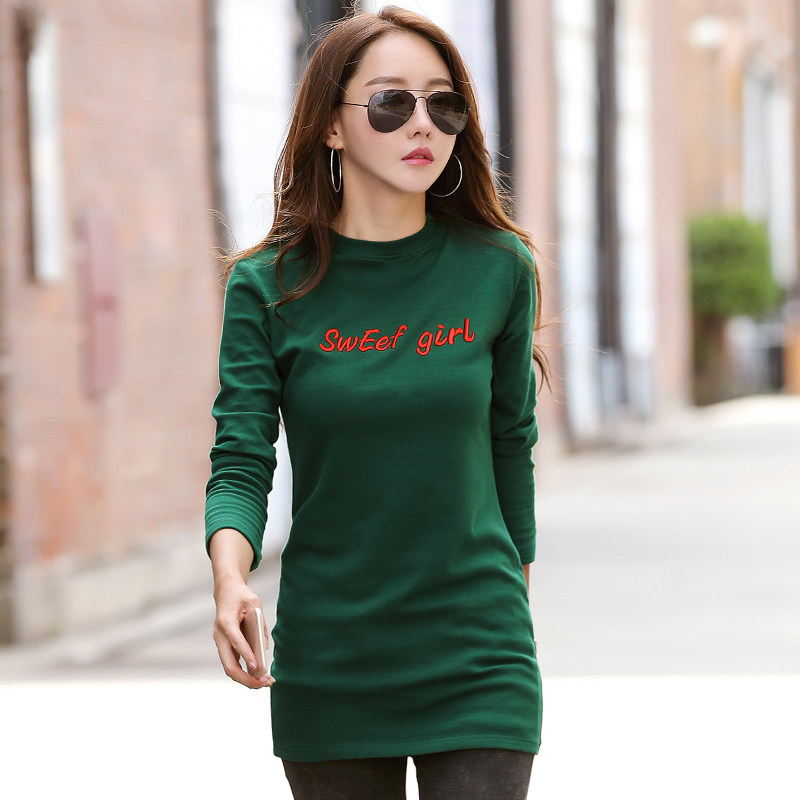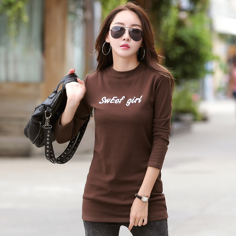 📚 纯棉t恤女长袖中长款加绒打底衫2026大码修身内搭小圆领保暖上衣