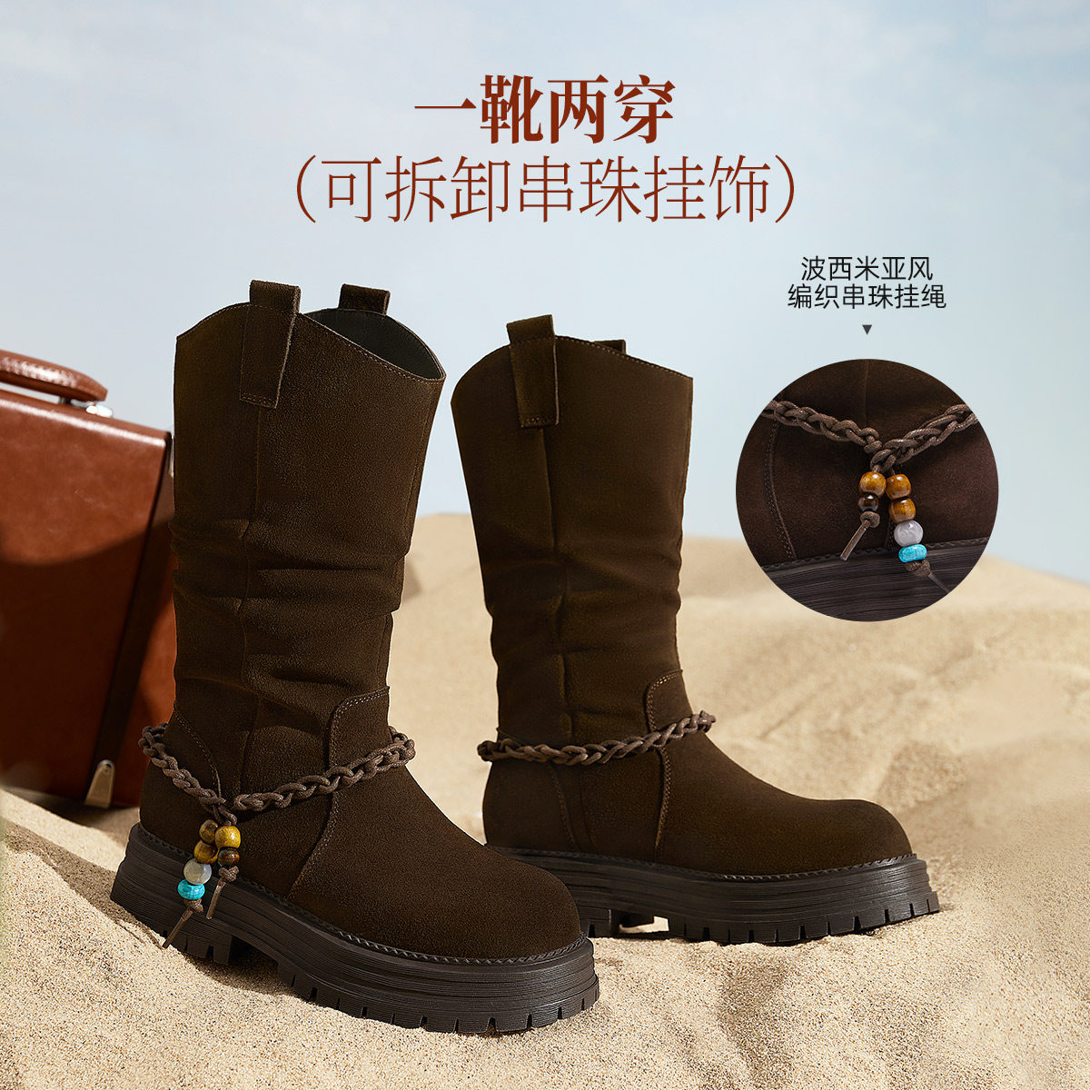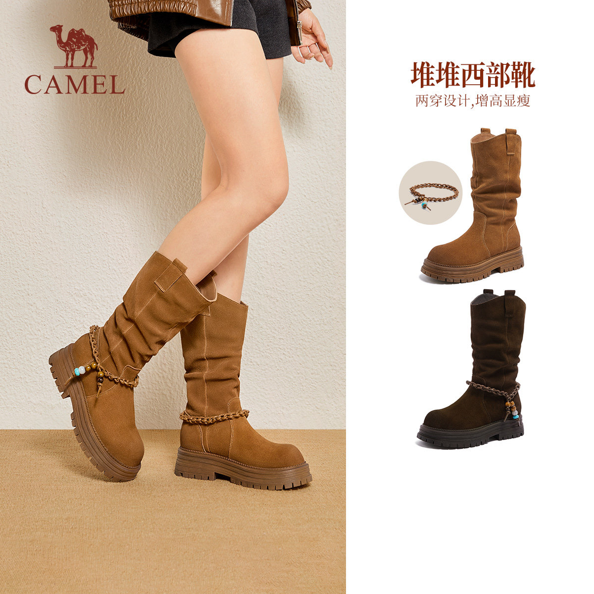 📚 骆驼女鞋2025冬季骆驼时装靴女英伦风加绒短靴厚底增高休闲靴