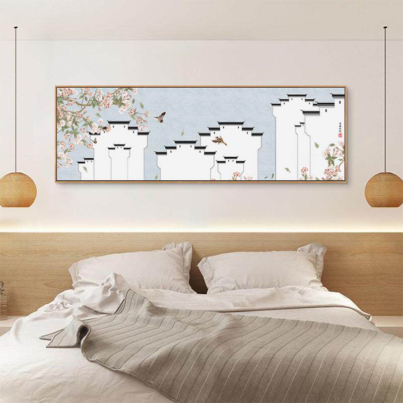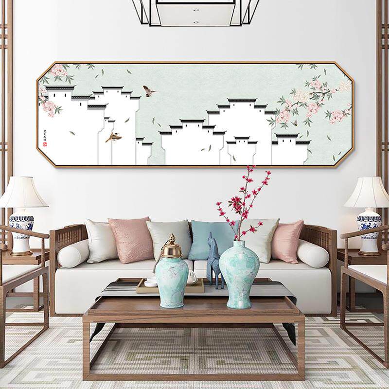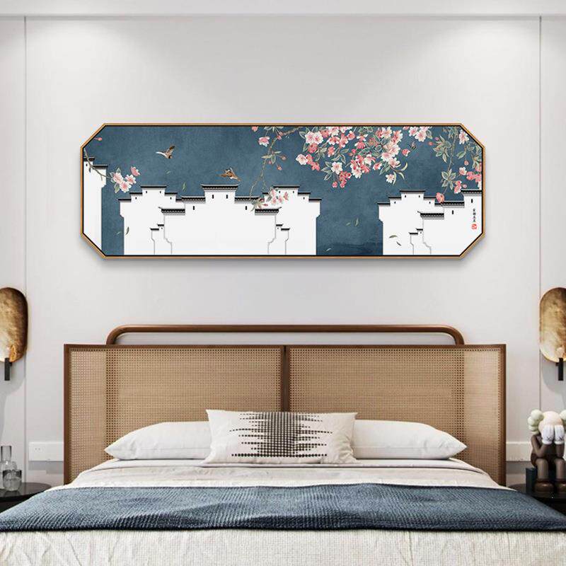 📚 徽派建筑新中式客厅装饰画茶室发鸟背景花挂画横卧室沙床QZ202110