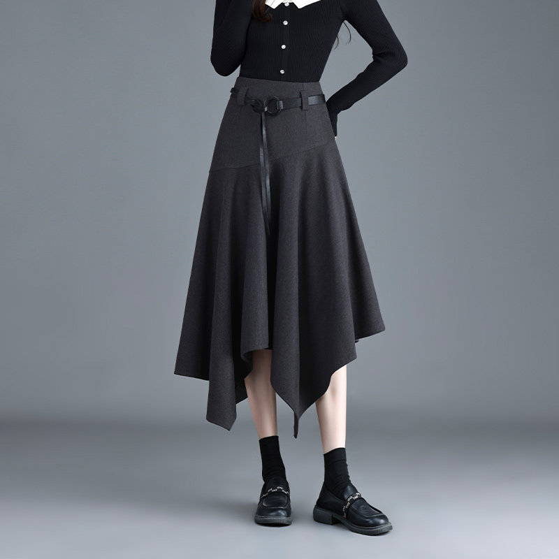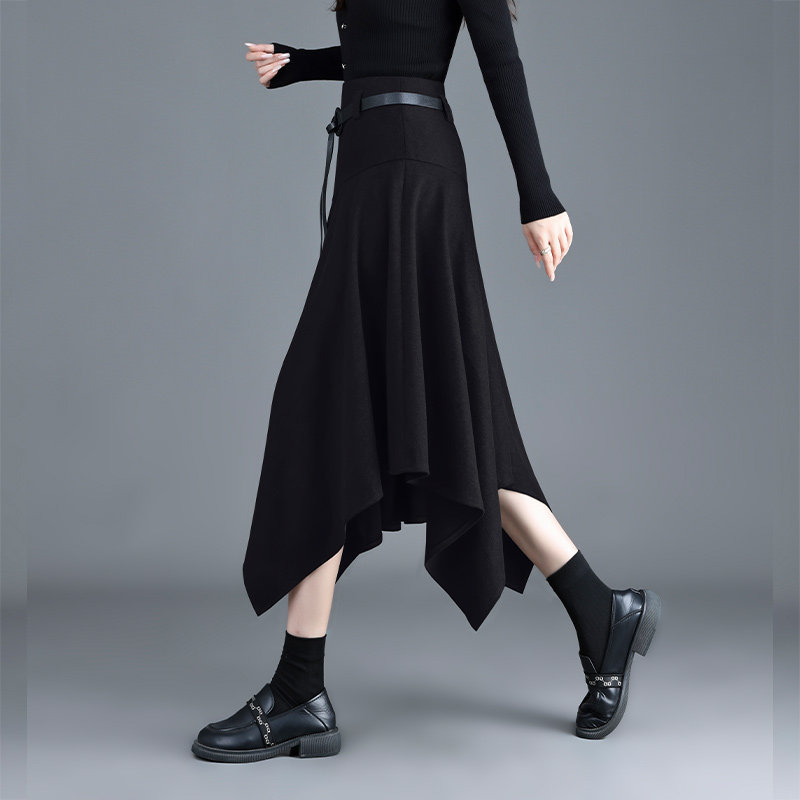 📚 白鹿语哥特浪漫黑色不规则A字半身裙女秋冬中长裙炸街个性时尚