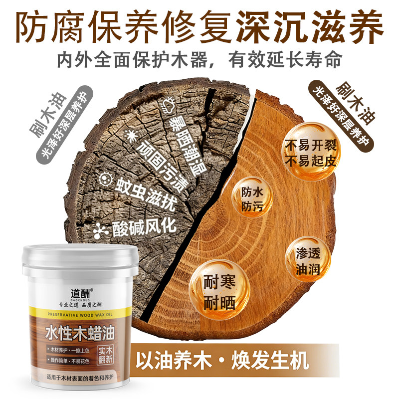 📚 水性木蜡油防腐防水耐候桐油户外木器漆透明清漆实木家具改色翻新