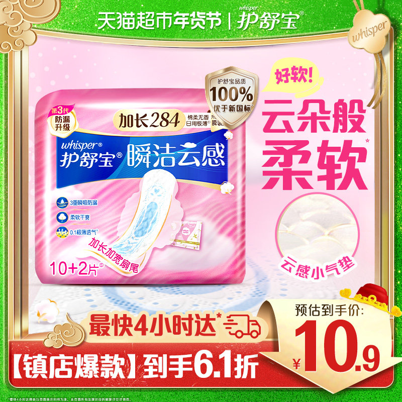 📚 护舒宝瞬洁云感棉卫生巾加长日用284mm 超薄透气干爽姨妈巾