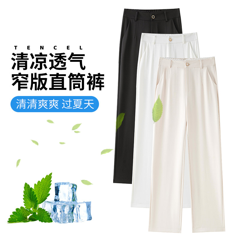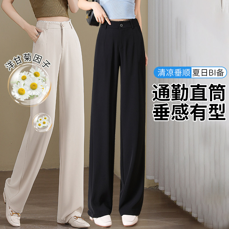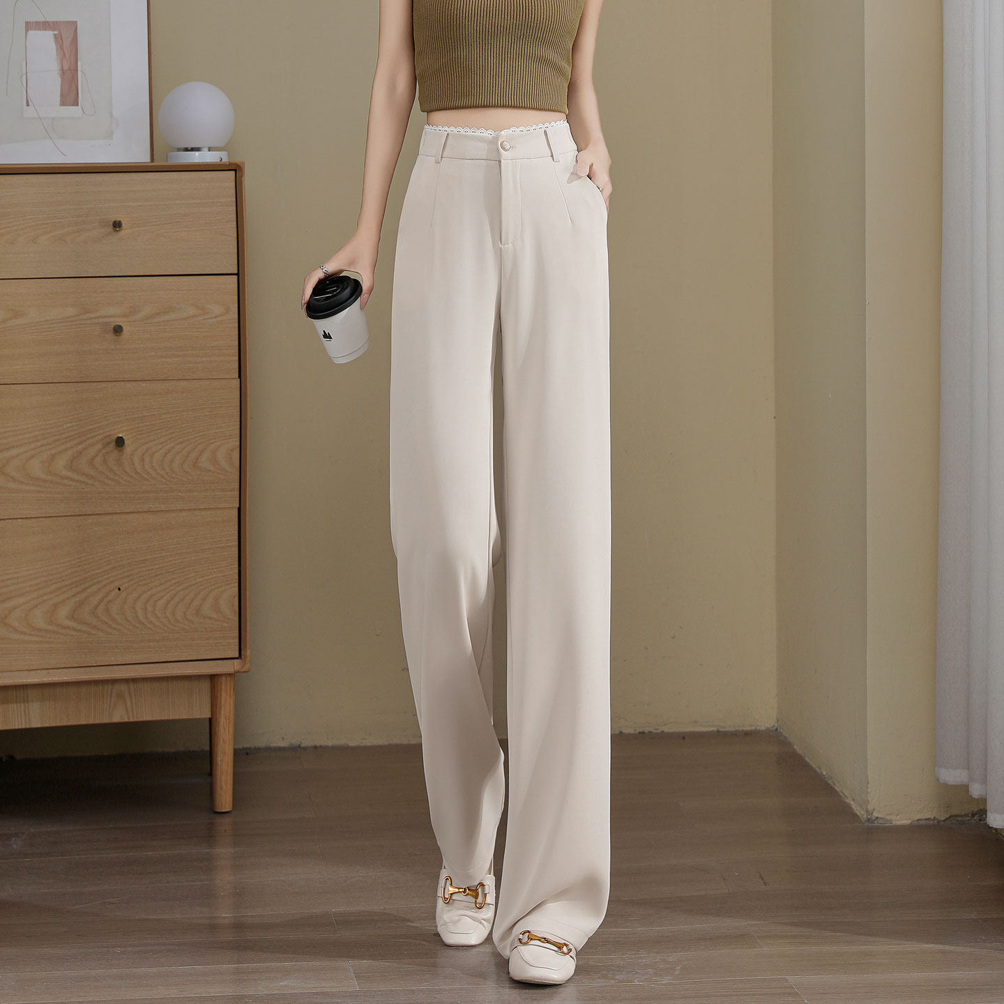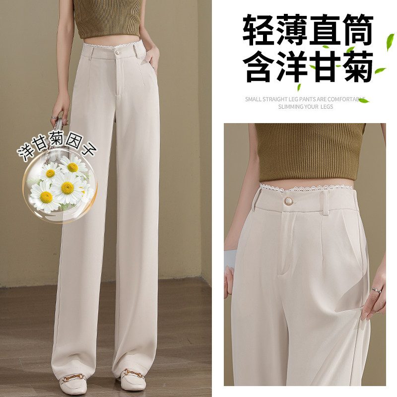 📚 直筒裤女2026新款夏薄款高腰显瘦垂感蕾丝花边裤子窄版休闲西装裤