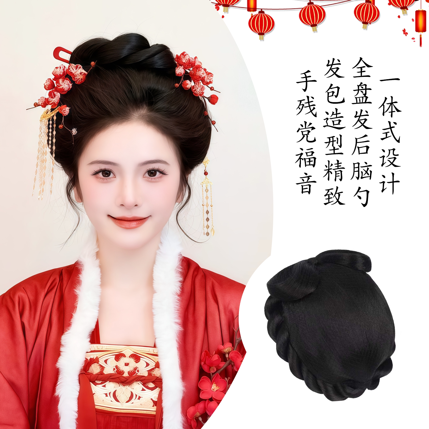 📚 汉服假发古风一体式发包盘发发髻古装唐风新娘发型后脑勺垫发包女