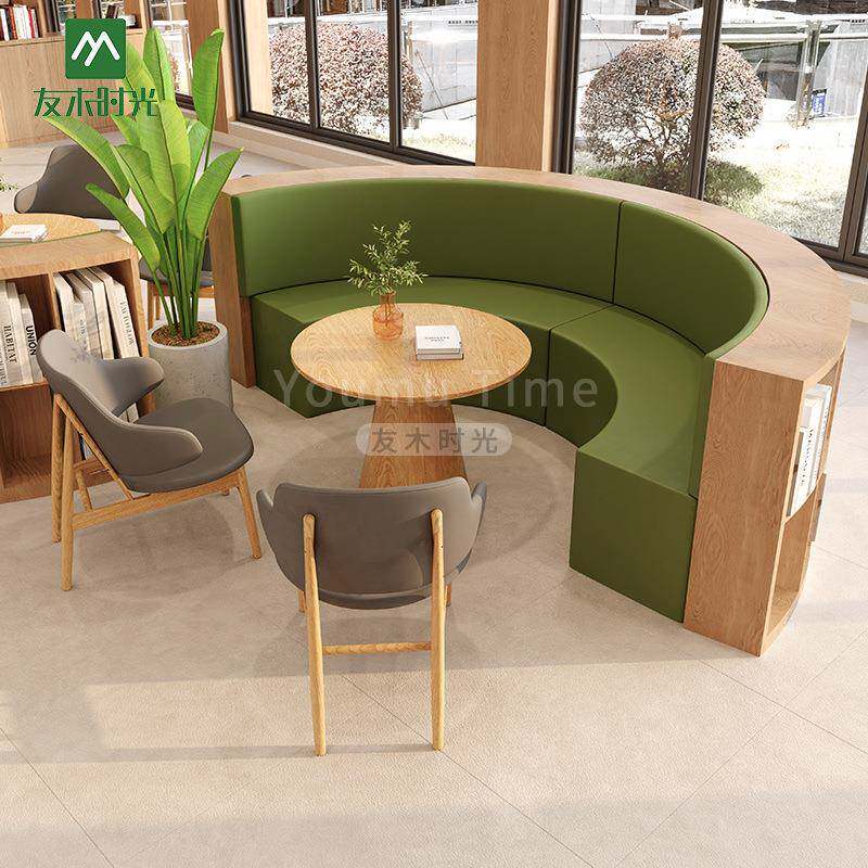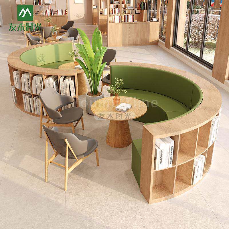 📚 阅览室桌椅S型沙发书柜休息区大厅接待休闲沙发椅图书馆卡座沙发