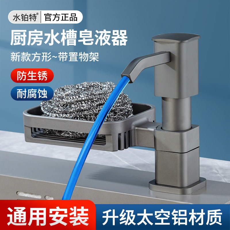 📚 厨房水槽洗洁精按压器加高置物架太空铝皂液器延长管洗涤剂压取头