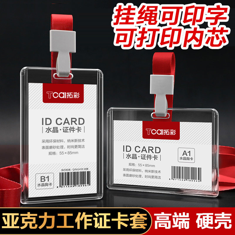 📚 亚克力卡套 透明工作证套胸卡工牌证件保护套双面工作牌带挂绳塑料厂牌壳硬证件套挂绳硬壳厂牌套挂绳带定制