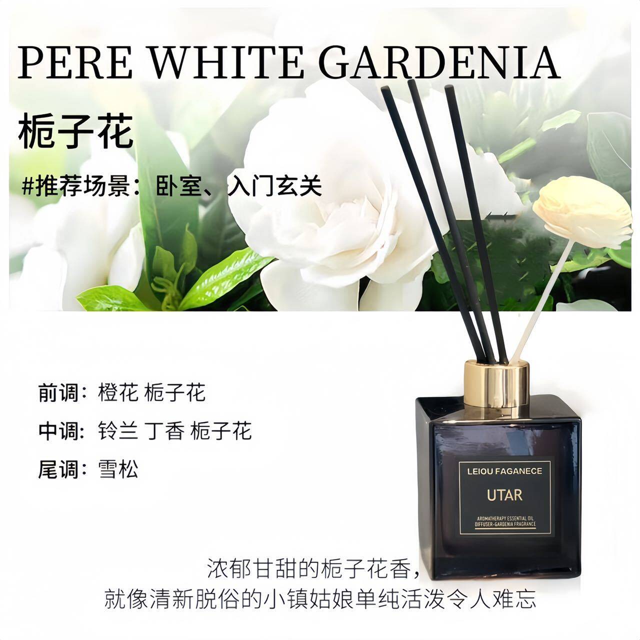 📚 UT他栀子花植物香薰200毫升UTAR大方瓶无火香薰客厅厕所除异味香