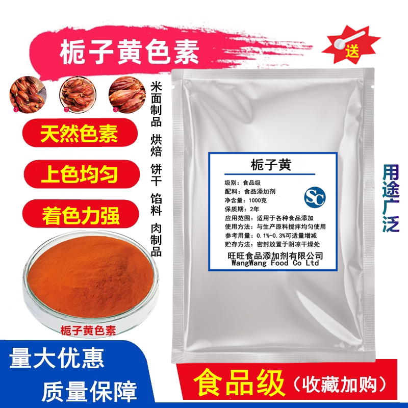 📚 食用栀子黄色素粉食品级着色剂面条上色盐焗鸡专用色商用500g包邮