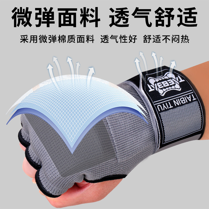 📚 儿童半指拳击手套凝胶拳套散打搏击护腕式缠手带绷带护手半指拳套