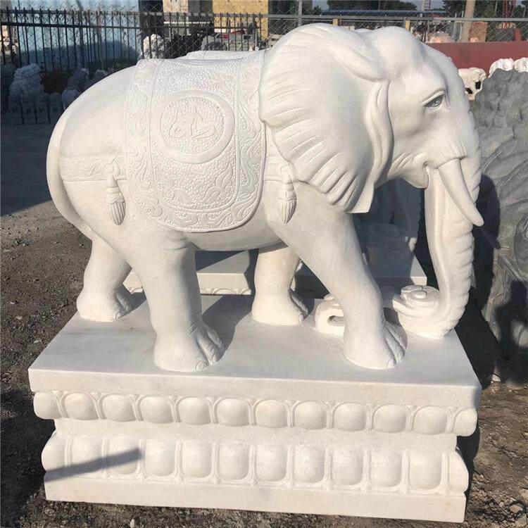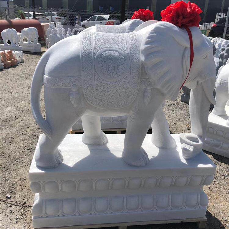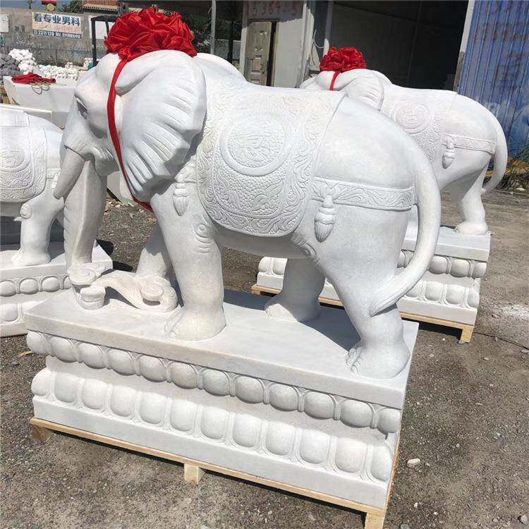 📚 石雕一对汉白玉小象商场别墅门口晚霞红石象摆件