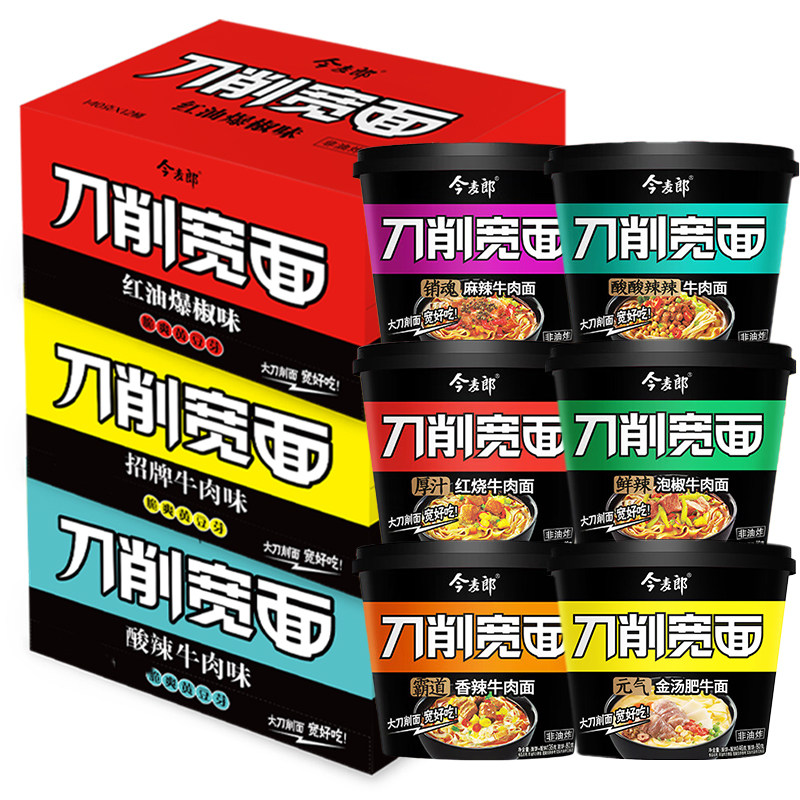 📚 今麦郎刀削宽面桶装非油炸方便面整箱12桶红烧香辣牛肉速食泡面