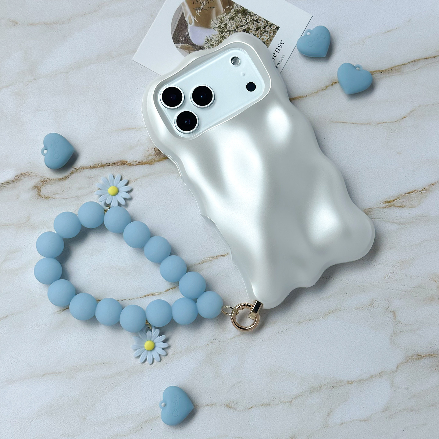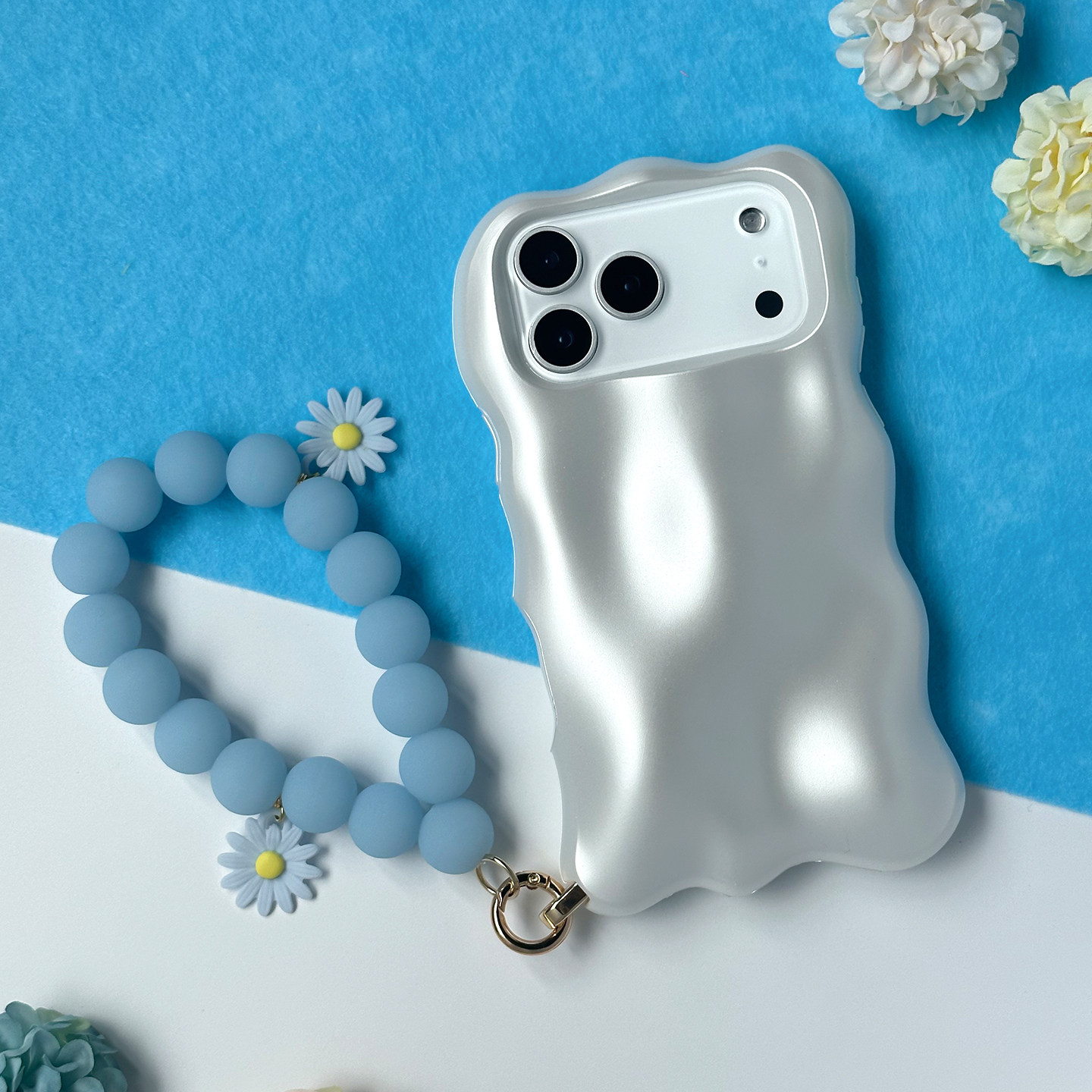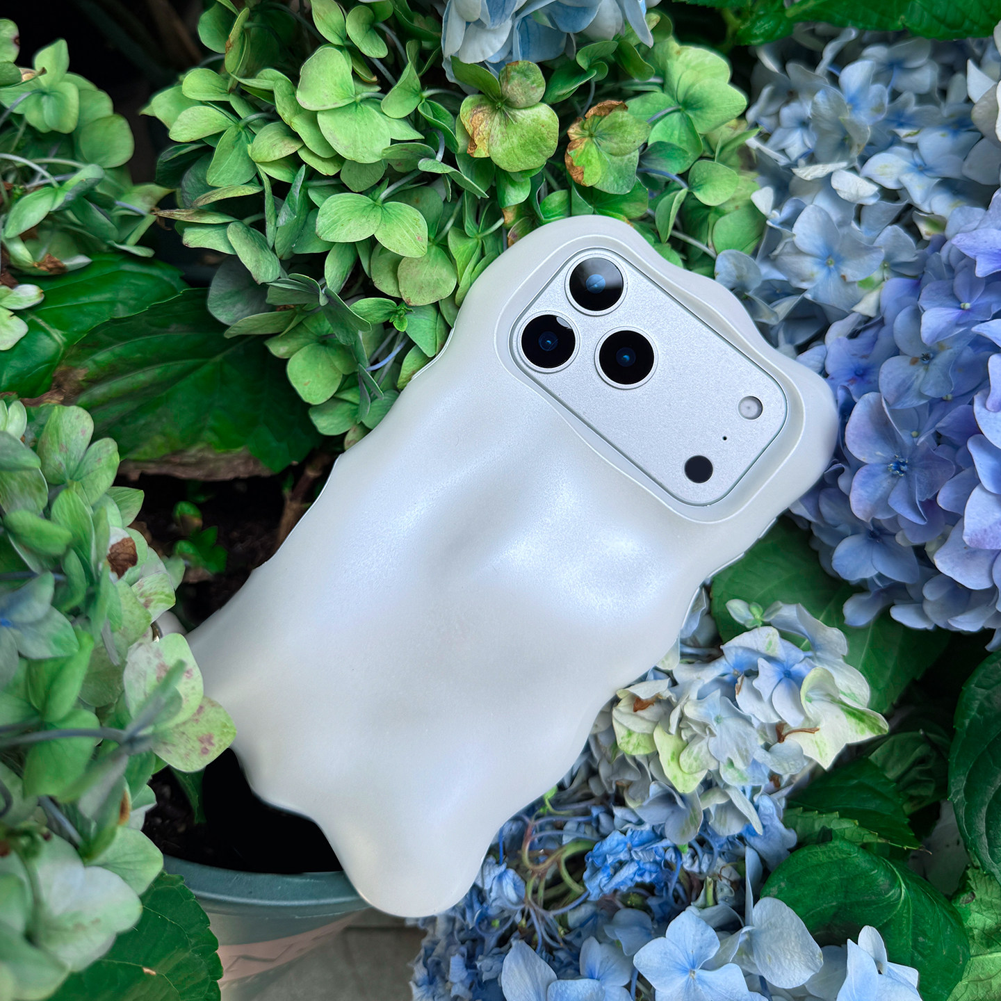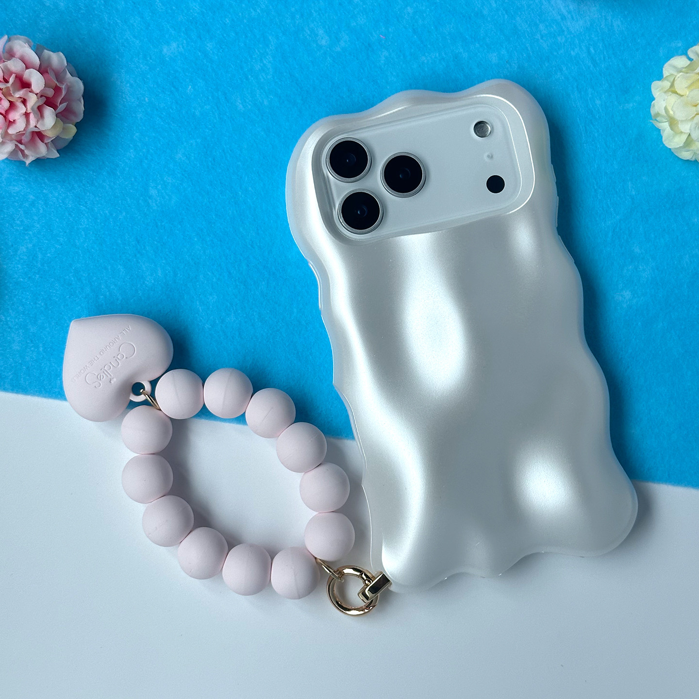 📚 Candies原创时尚通用iPhone17ProMax珍珠白硅胶波浪手机壳