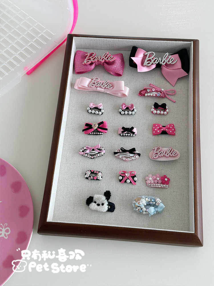 📚 芭比手工迷你碎发宠物bb夹蝴蝶结发夹饰品猫咪头饰约克夏马尔济斯