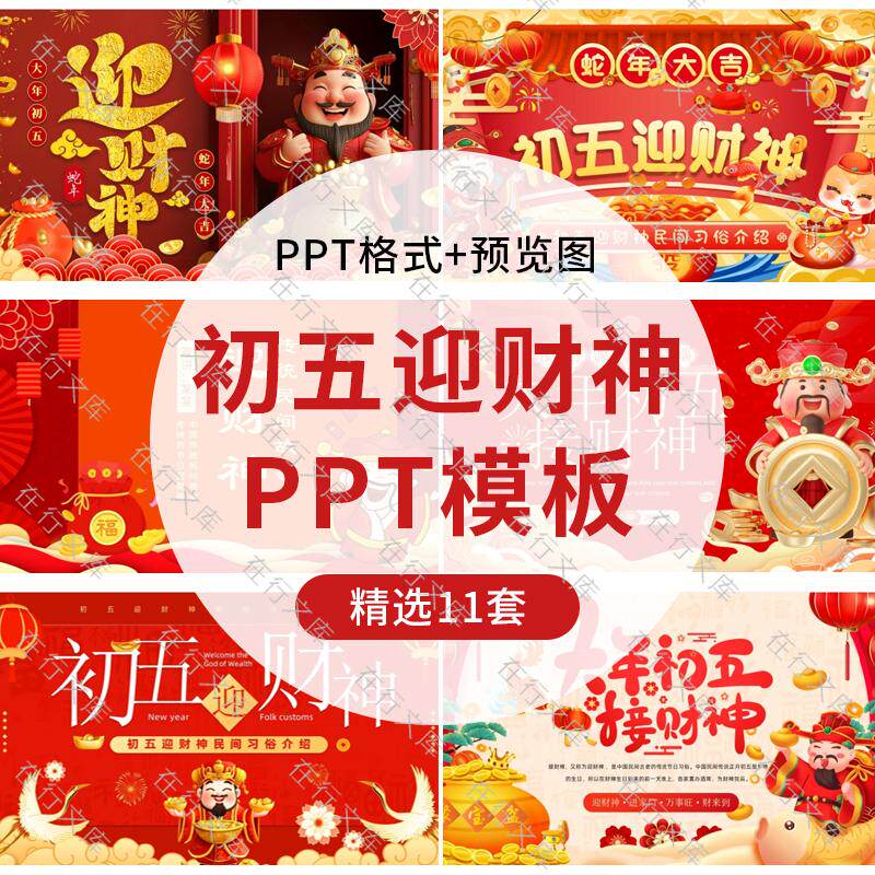 📚 2025蛇年新年春节大年初五迎财神传统习俗介绍传说故事ppt模板