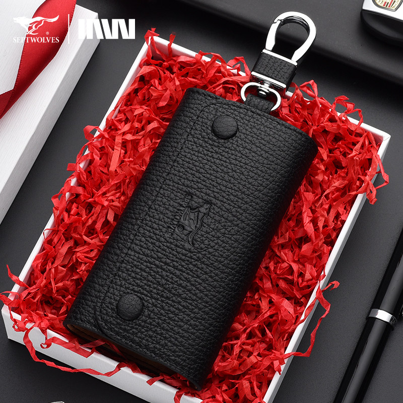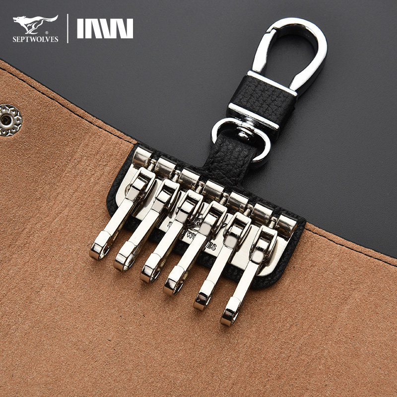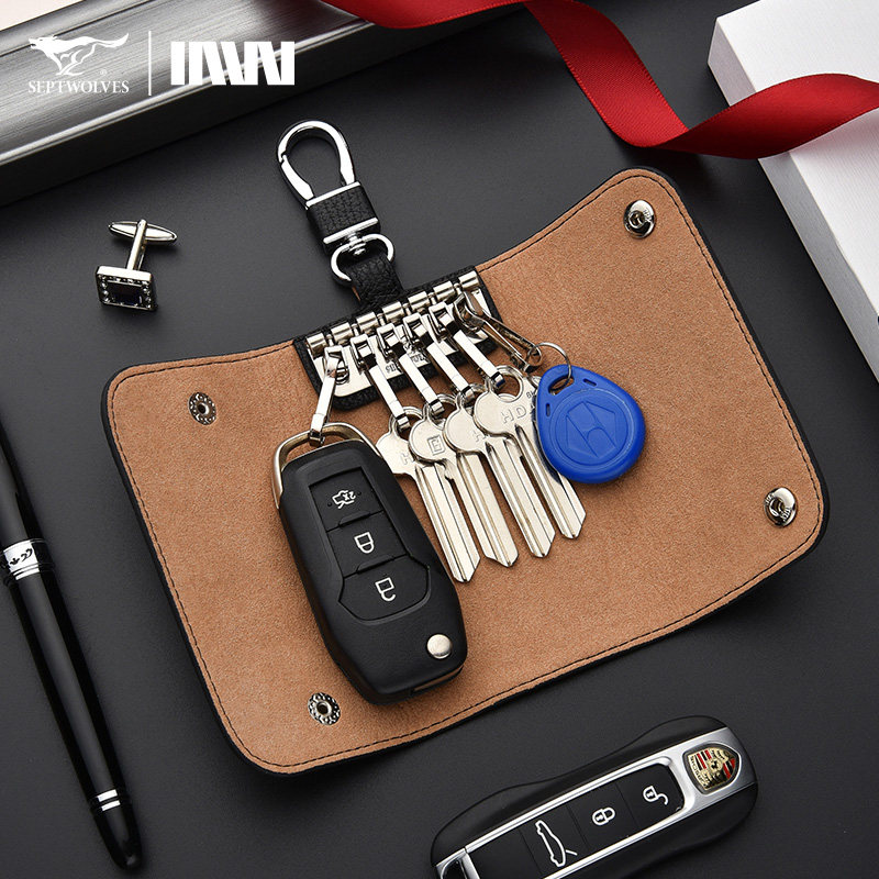 📚 七匹狼钥匙包汽车钥匙套男士真皮锁匙包牛皮通用女腰挂家用钥匙扣