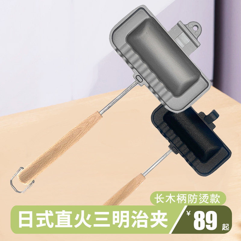 📚 网红热压三明治夹燃气直火日本夹锅封边露营早餐厚夹日式吐司烤盘