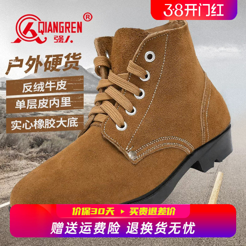 📚 强人3515高帮鞋男翻毛皮鞋男真皮大头工装鞋高邦马丁靴男士大黄靴
