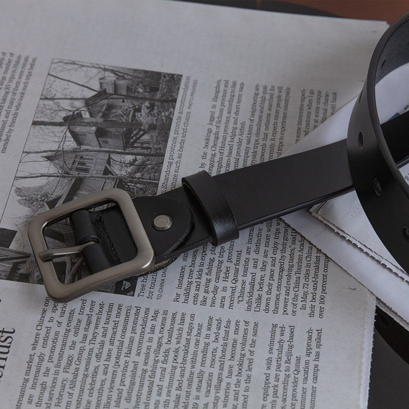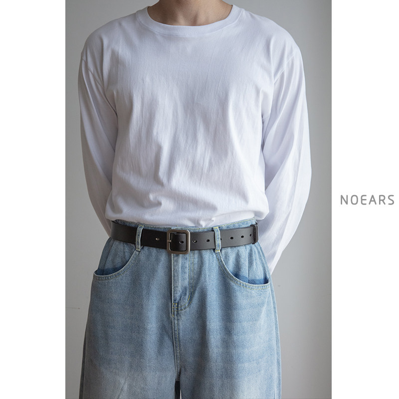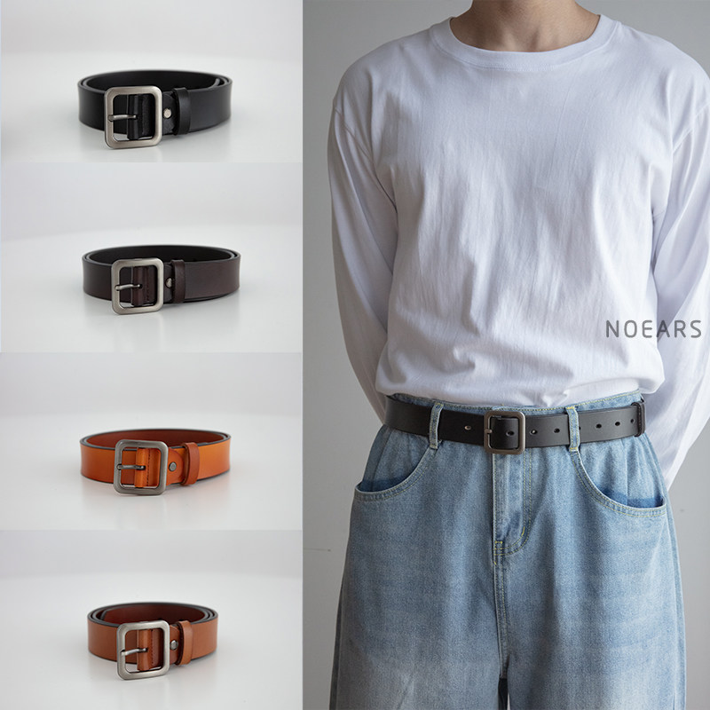 📚 NOEARS复古百搭日字合金扣懒人牛仔裤皮带男女通用真皮军训腰带潮
