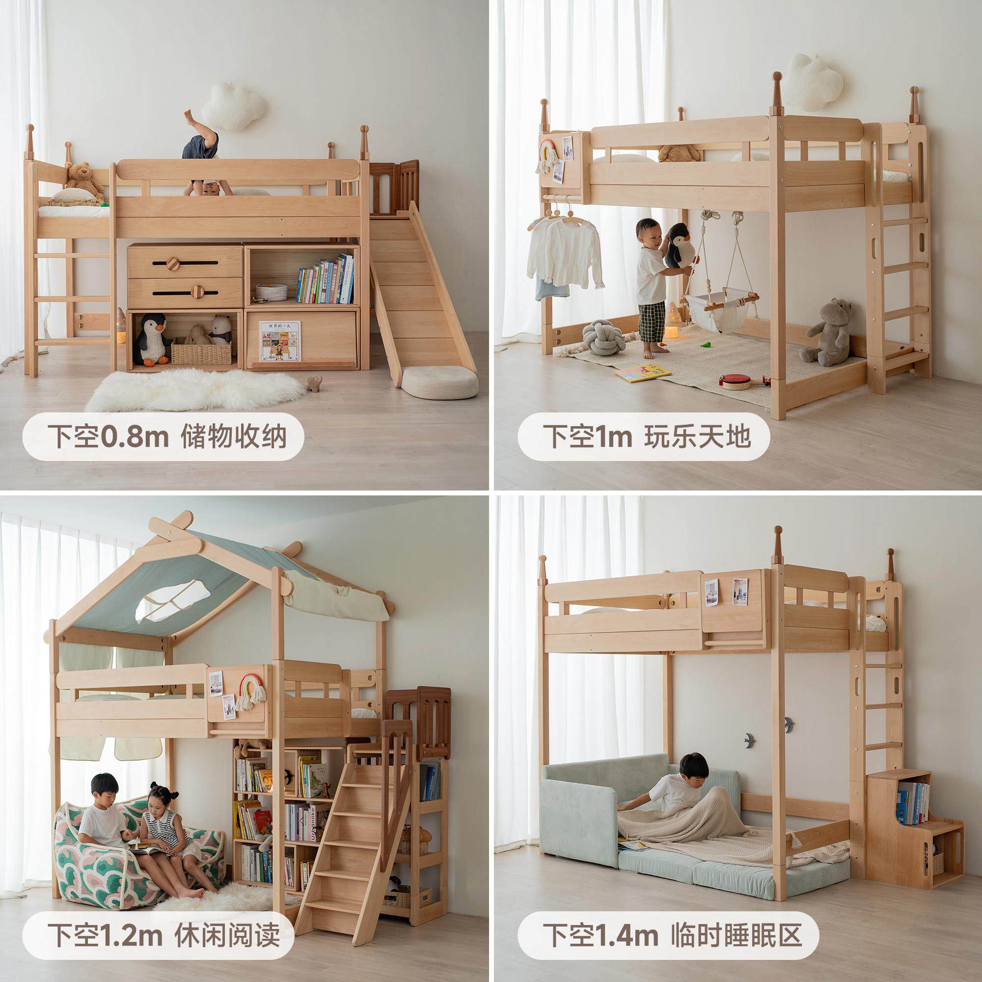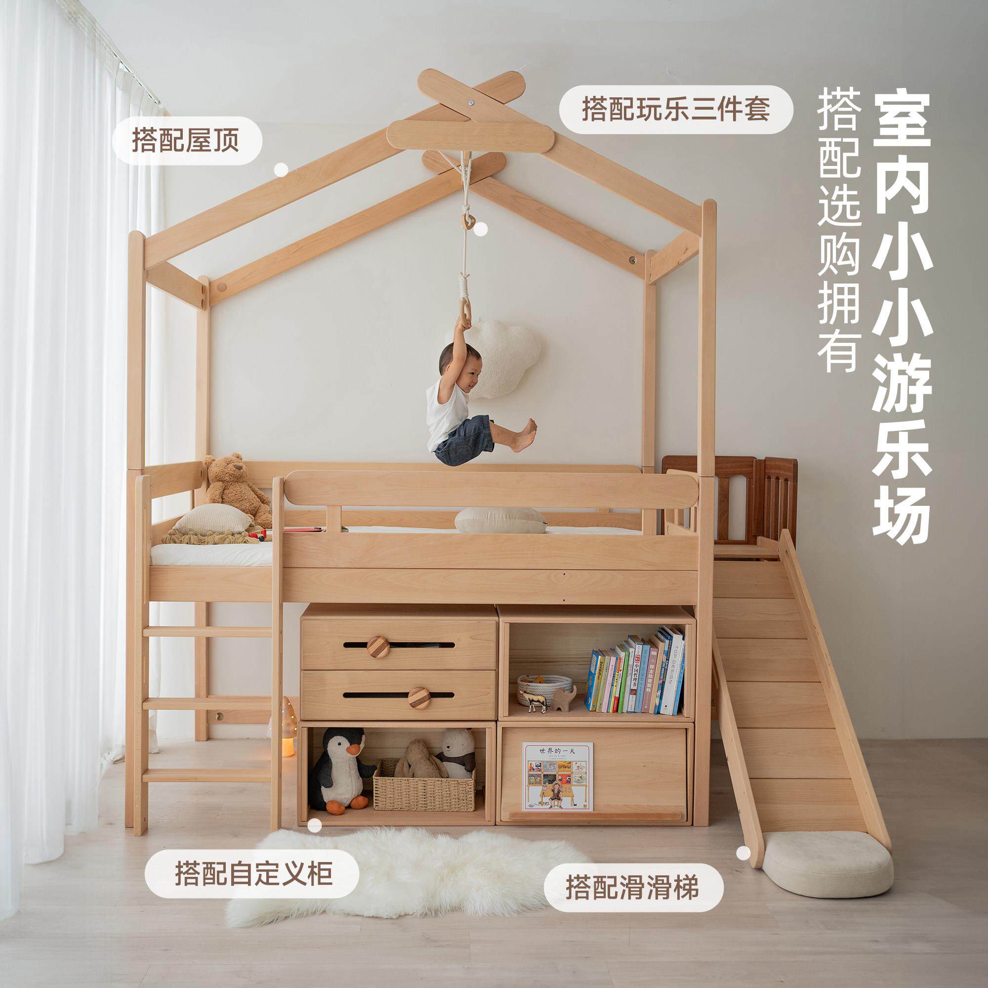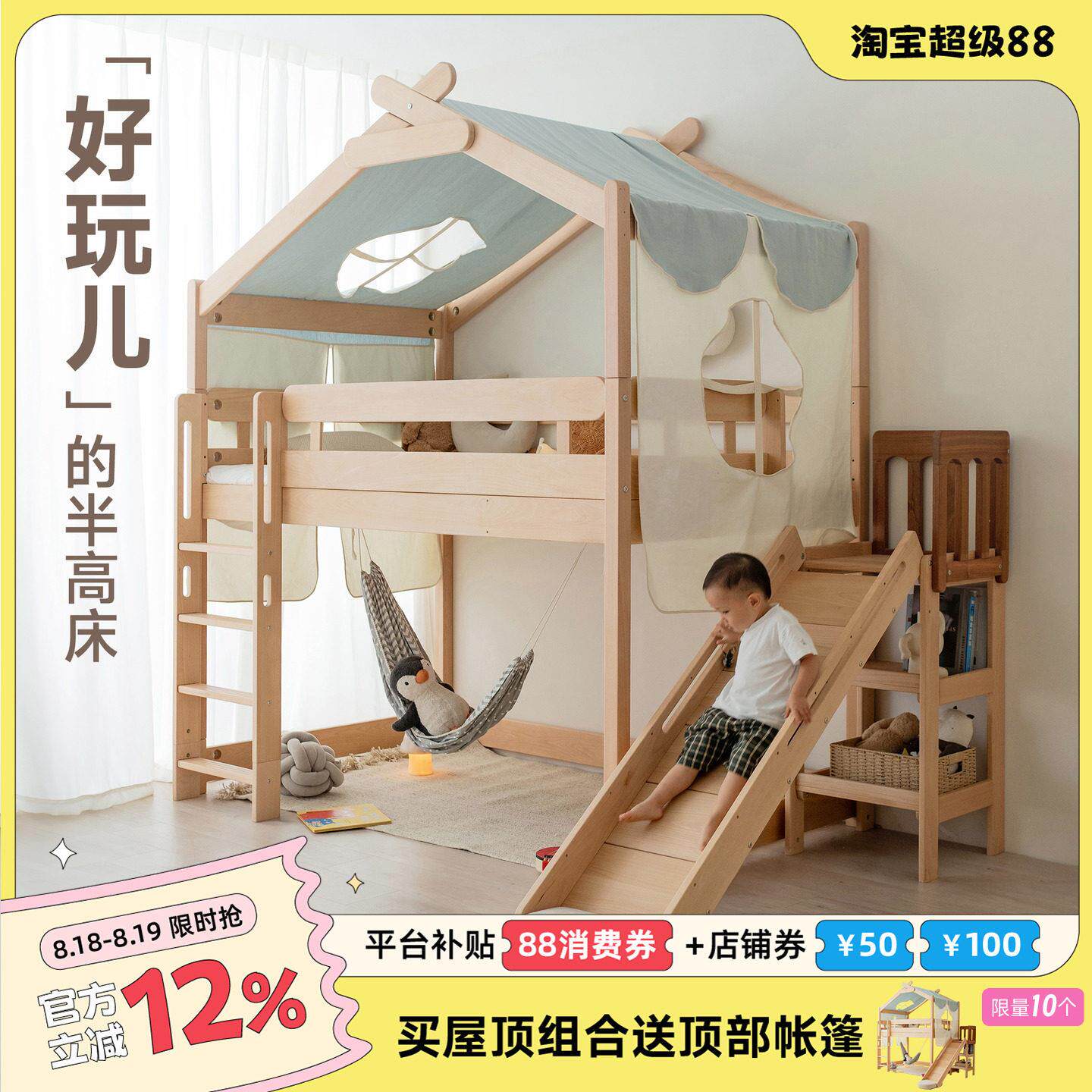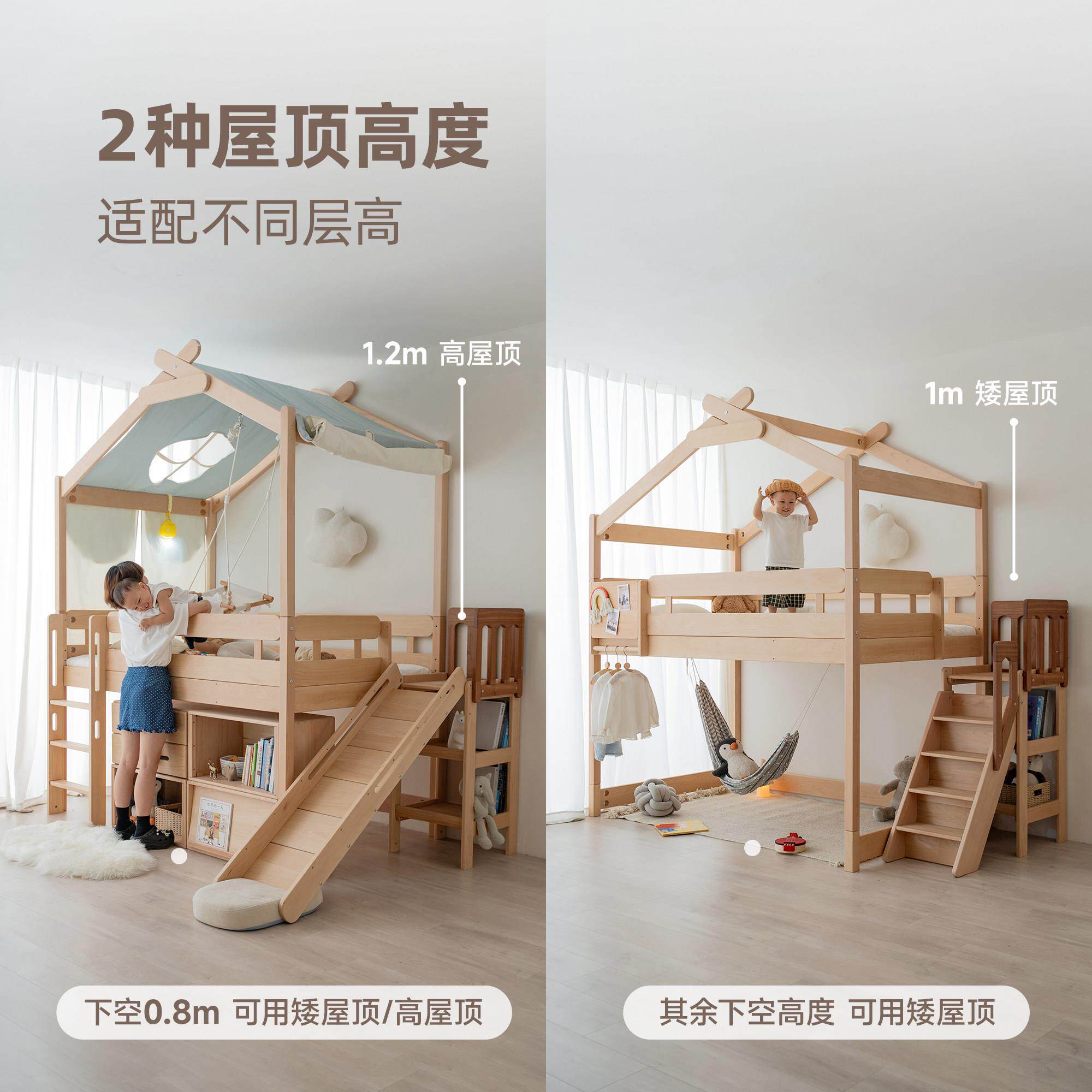 📚 玩梦超人 魔比半高床滑梯飞屋床实木儿童床树屋高架床上下双层床