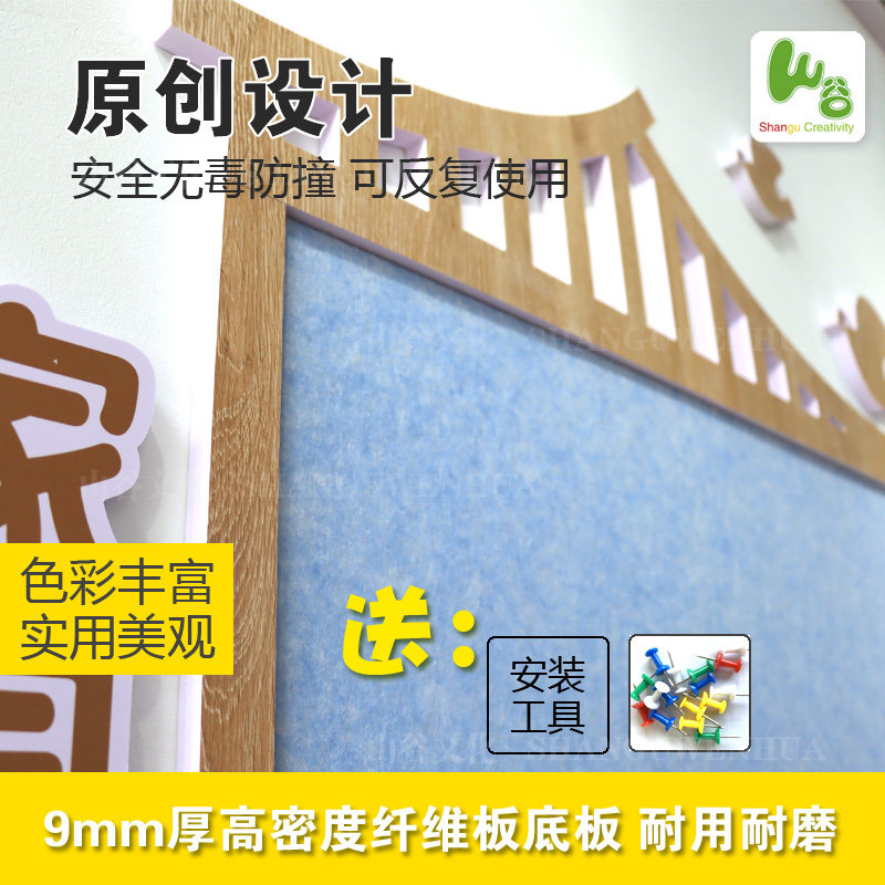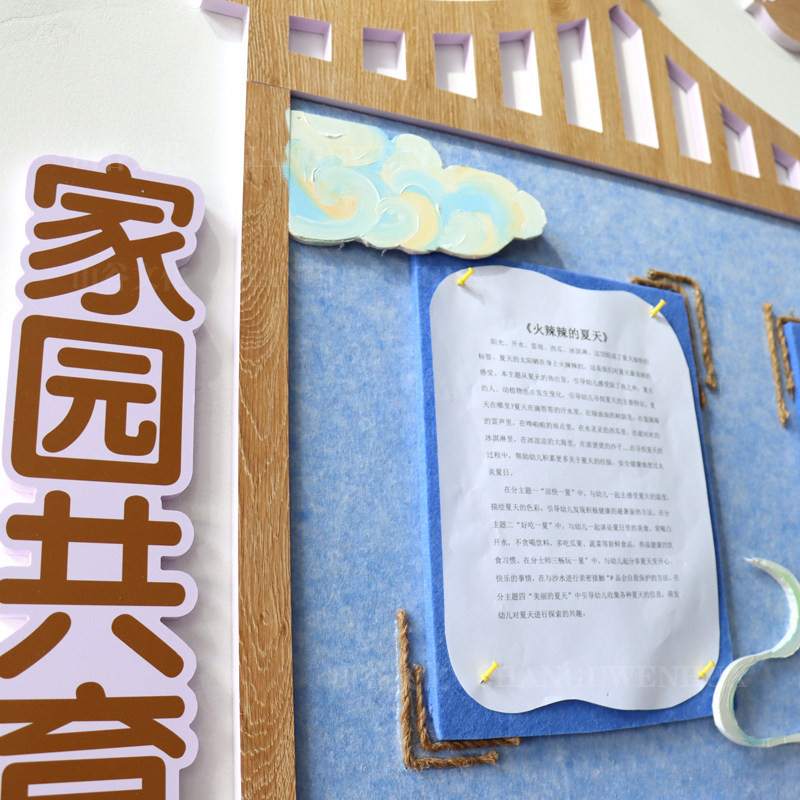 📚 家园栏幼儿园家园共育展示板中式国风环创主题墙楼梯装饰毛毡立体