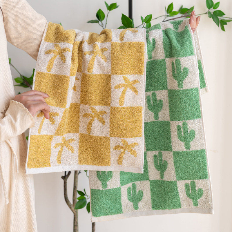 📚 椰树仙人掌纯棉毛巾家用柔软女吸水面巾洗手间洗脸手巾小清新