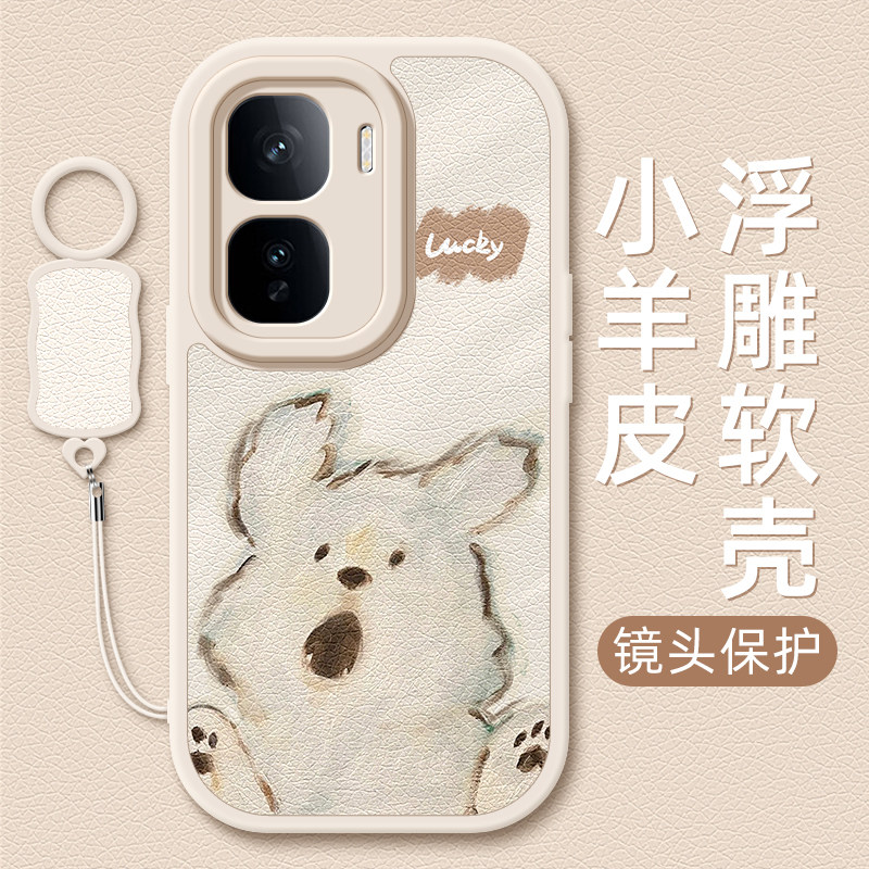 📚 惊讶小狗适用iqooneo10pro手机壳vivoiqoo13/12/11小羊皮Neo9/8/7/6/5/3新款5se活力版5s女款9spro+挂绳