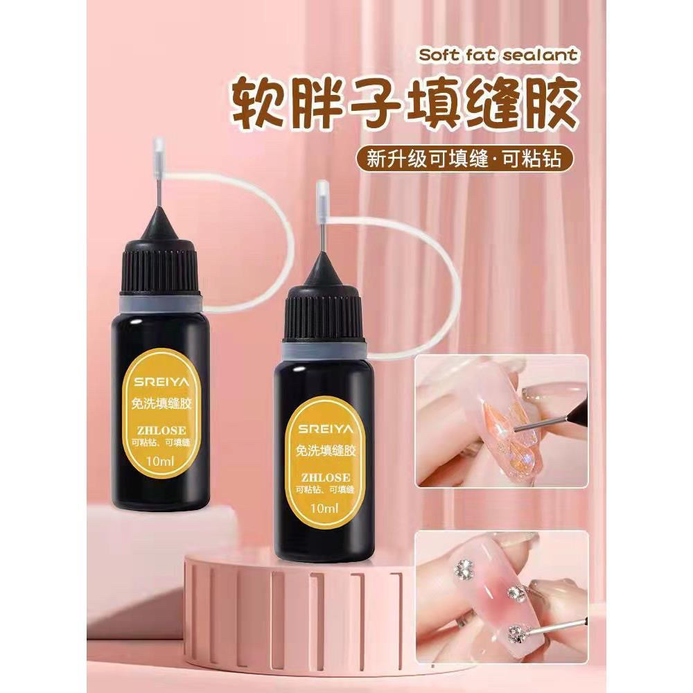 📚 网红软胖子封边胶免洗填缝胶大力粘钻胶美甲专用指甲胶水贴粘钻笔