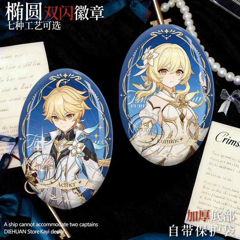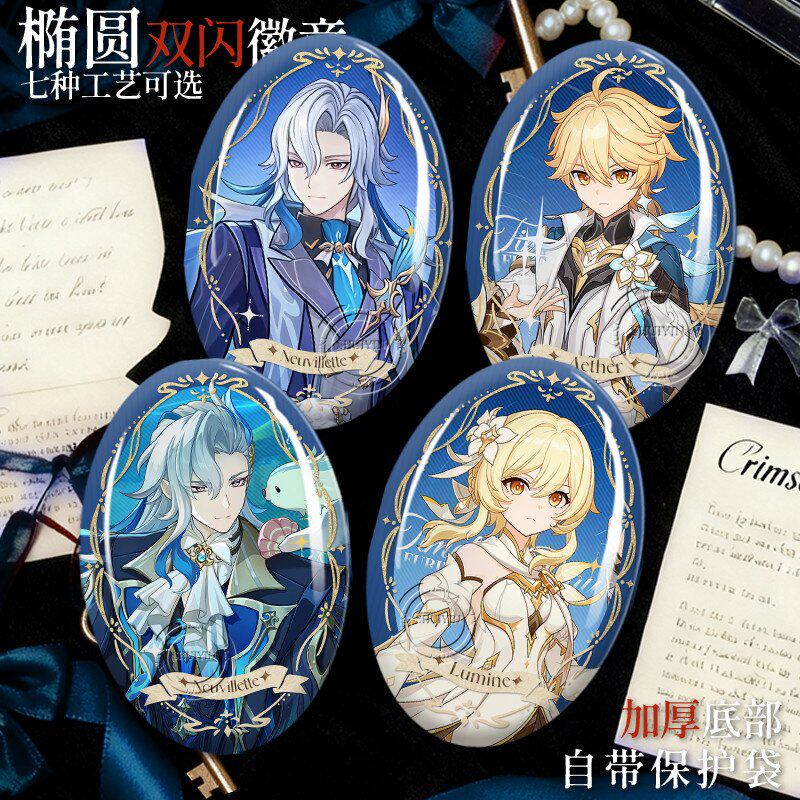 📚 空荧那维莱特椭圆吧唧镭射徽章周边双闪谷子马口铁胸针漫展物料