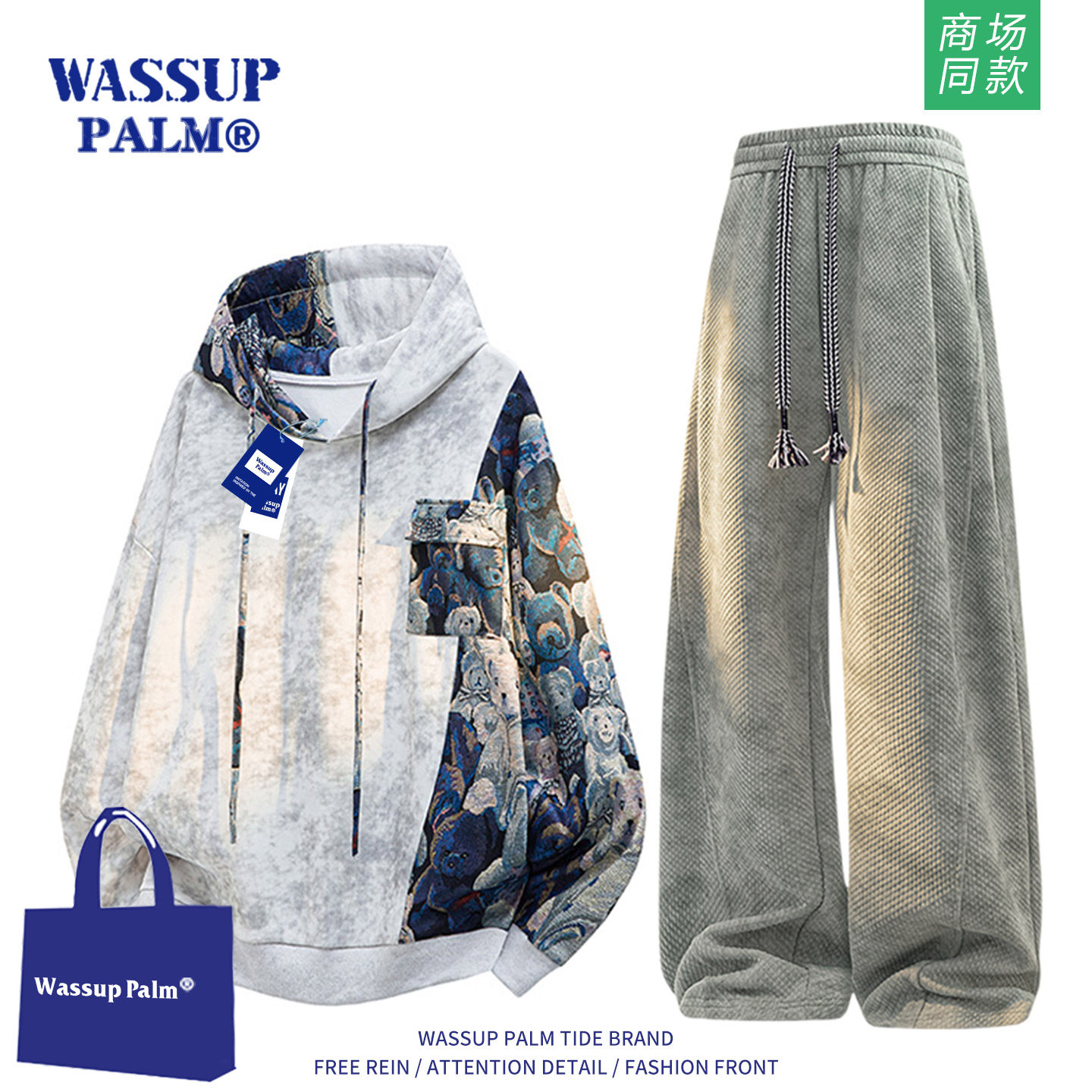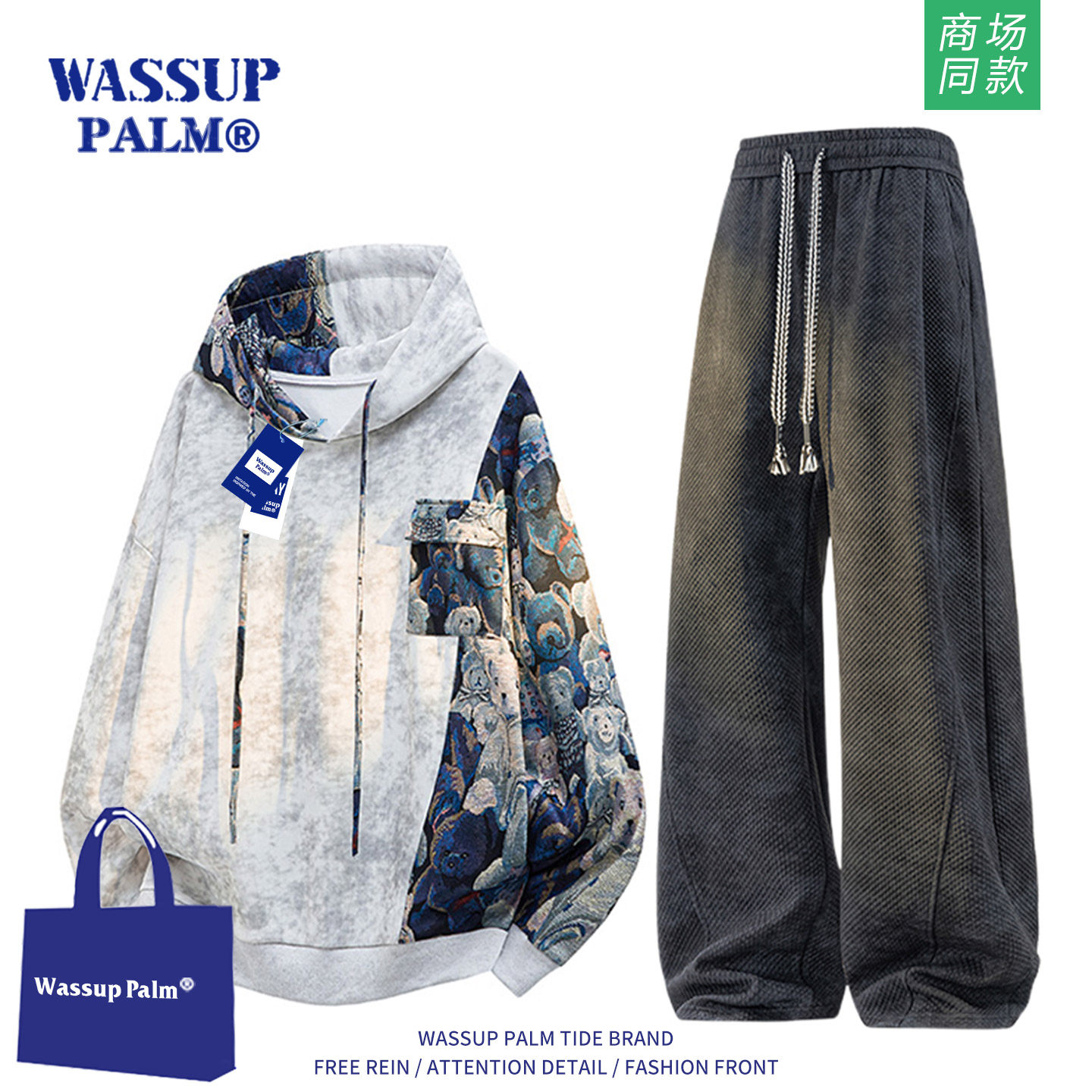 📚 WASSUP PALM运动套装男款2025新款冬季加绒扎染卫衣休闲裤一整套