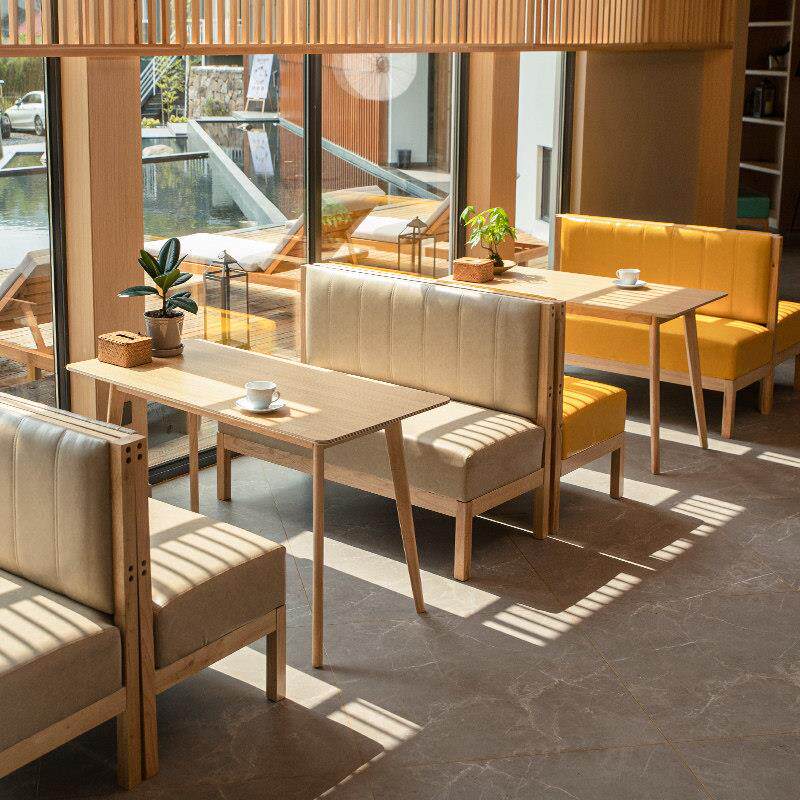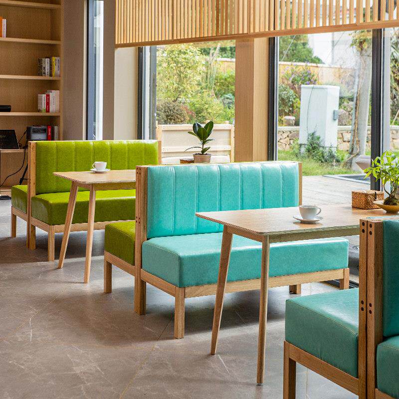 📚 奶茶店实木卡座咖啡厅酒吧清吧西餐厅桌椅组合冷饮店休息区沙发凳