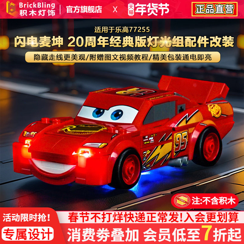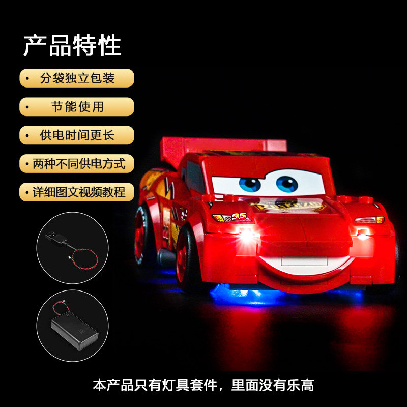 📚 BrickBling适用乐高灯光超级赛车系列77255闪电麦坤积木灯饰配件