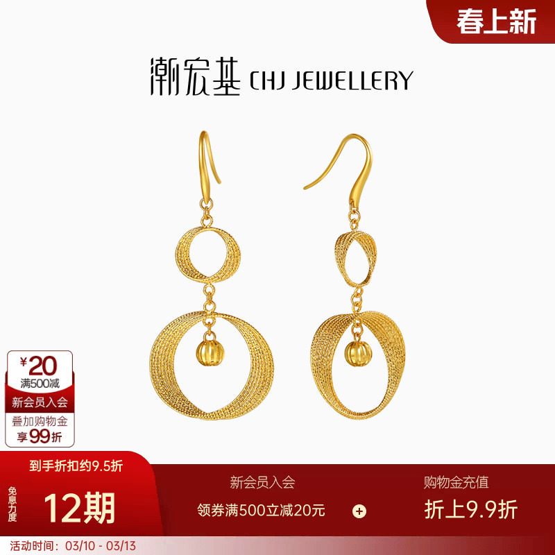 📚 潮宏基浮光掠影黄金耳钉足金耳环耳饰结婚三金婚嫁高奢女礼物 卟