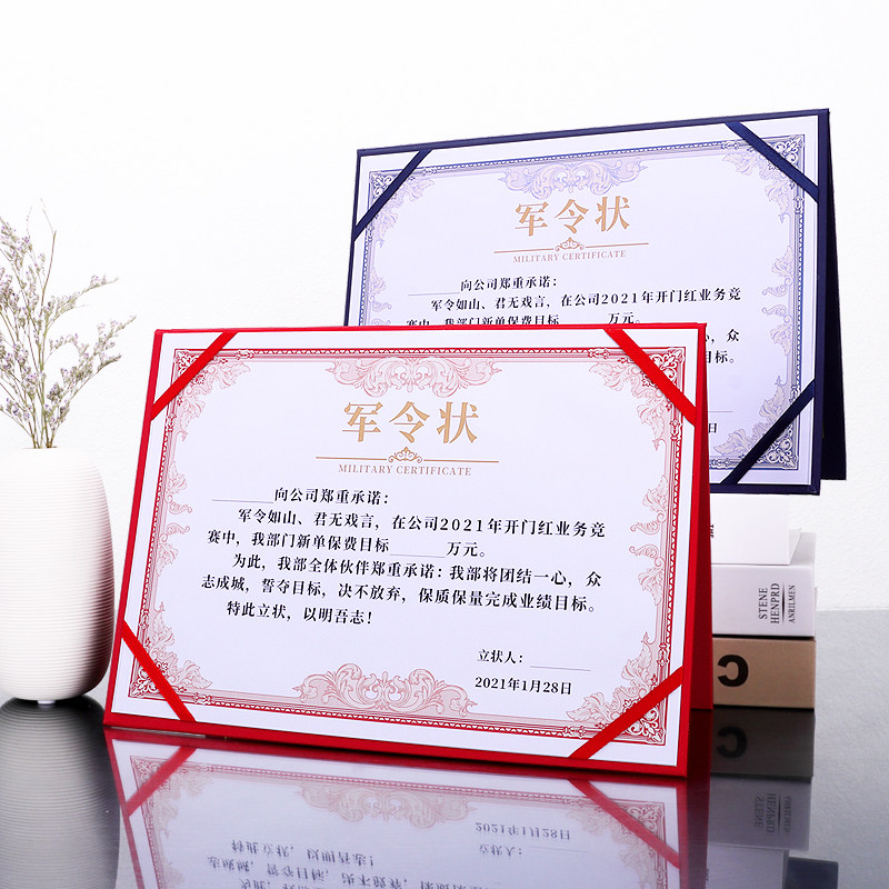 📚 军令状a4定制外壳封面烫金封皮订做目标责任书承诺书任务保证书红色蓝色荣誉证制作团队工作决心打印包邮