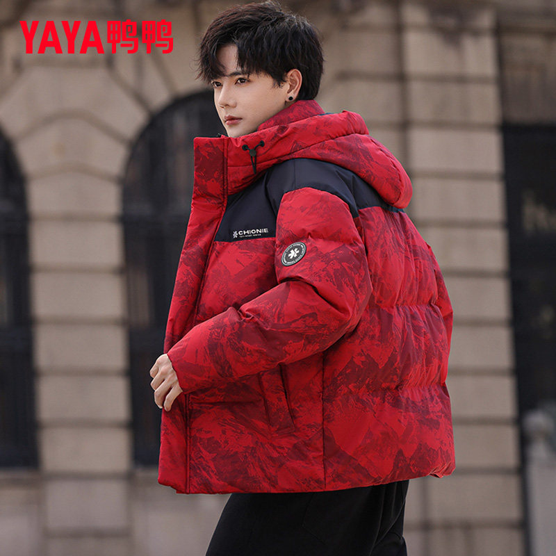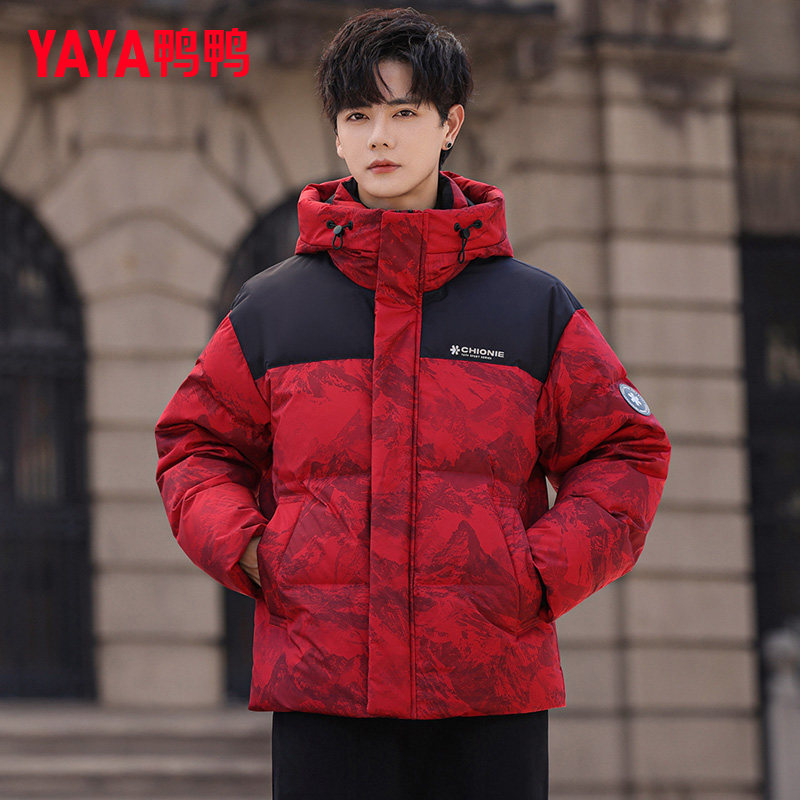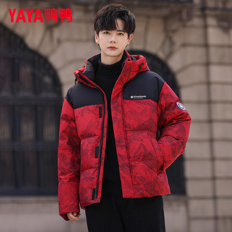 📚 【王一博同款】鸭鸭男士羽绒服2025新款红色迷彩短款冬季加厚外套
