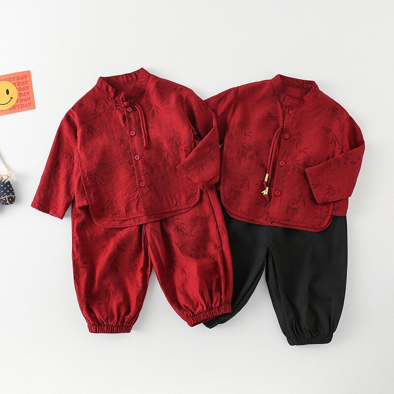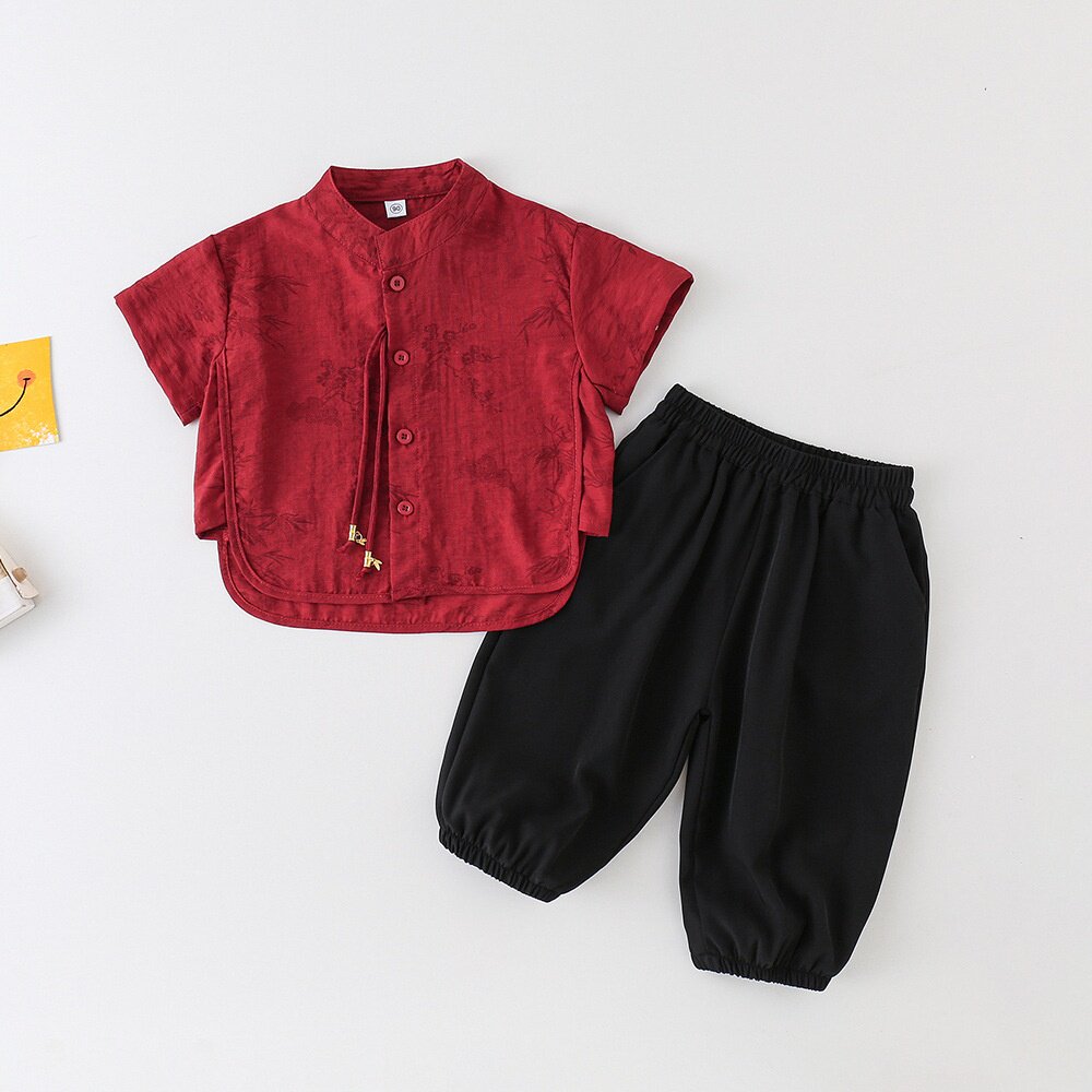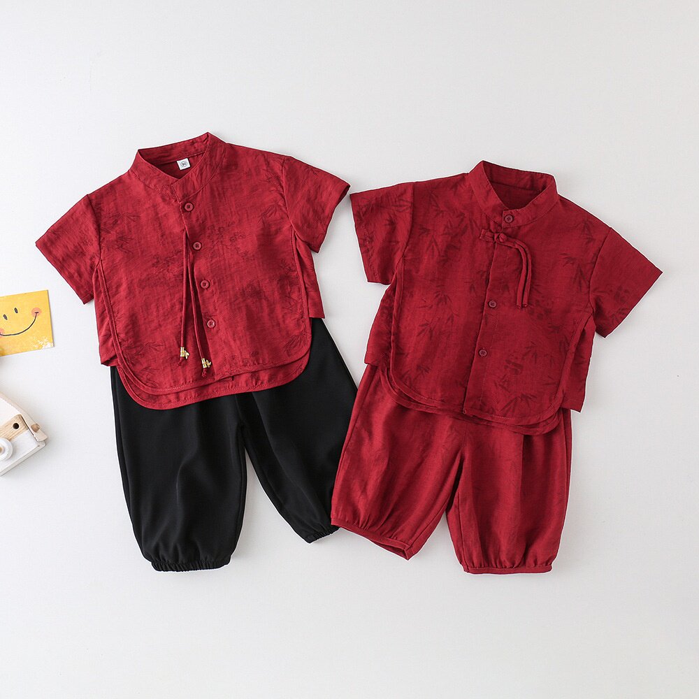 📚 男童汉服夏装套装宝宝生日周岁礼服中小童新中式红色喜庆国风唐装