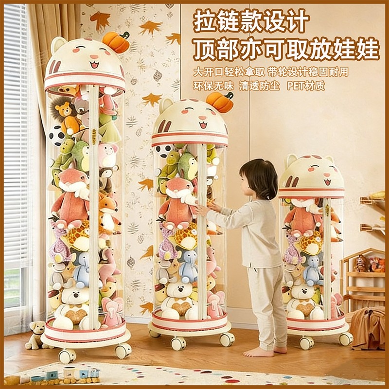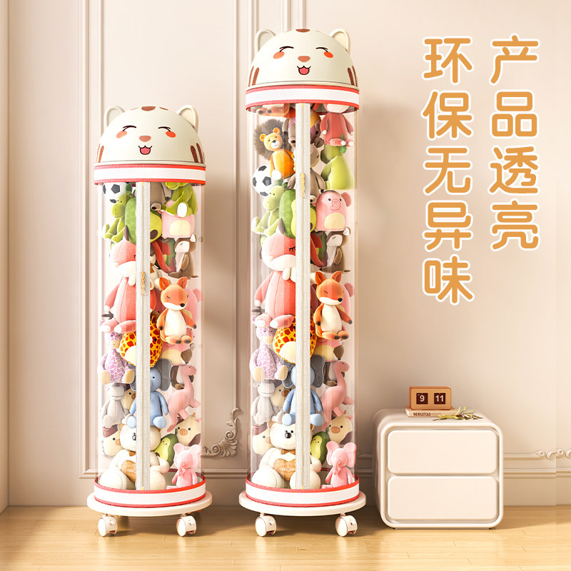 📚 毛绒娃娃收纳桶升级拉链款公仔玩偶储物桶儿童玩具收纳筒透明神器
